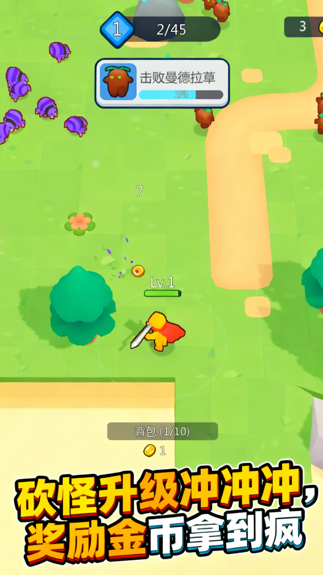 趣玩冲刺大冒险是一款魔性十足的打怪升级游戏,控制游戏中的主角开始冒险,通过在野外不断的击杀怪物获取丰富的奖励,升级装备武器,你不是在苦大仇深地拯救世界,而是在一个色彩明快、怪物呆萌的奇幻世界里,享受最纯粹、最解压的刷宝乐趣。你的目标简单直接:冲向野外,击杀所有挡路的怪物,用战利品武装自己,然后冲向更危险、奖励也更丰厚的地区,开启一场永不停歇的成长与收获大冒险!