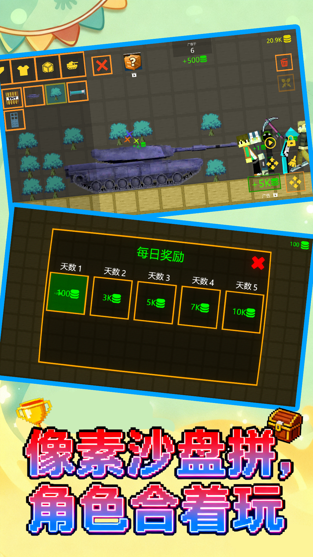 沙盒人生模拟是一款像素沙盒风格的对战冒险游戏,点击建造角色搭配不同的武器,自由的展开对战,获取丰富的奖励,将极高自由度的像素沙盒建造、深度装备驱动与快节奏动作对战完美融合的开放世界游戏,你不是体验预设的人生,而是亲手定义一切规则。你既是世界的建筑师、装备的锻造师,也是直面一切挑战的战士。在广袤的沙盒阵地上,开启一场融合了冒险、创造与征服的独特人生。