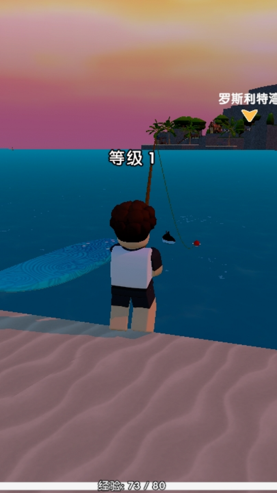 2、然后开始前往钓鱼的区域,准备开始钓鱼,点击鱼竿即可开始;
