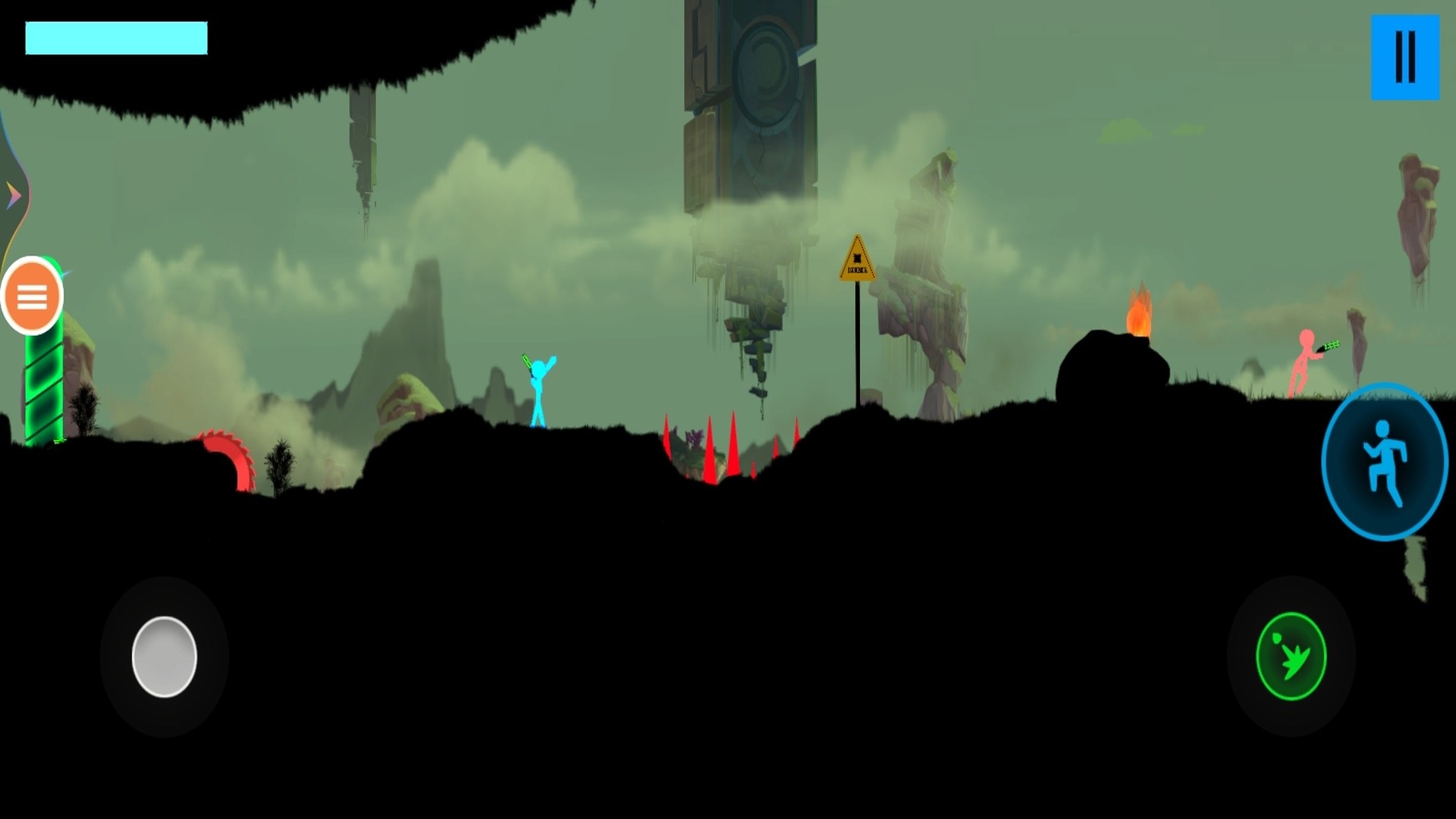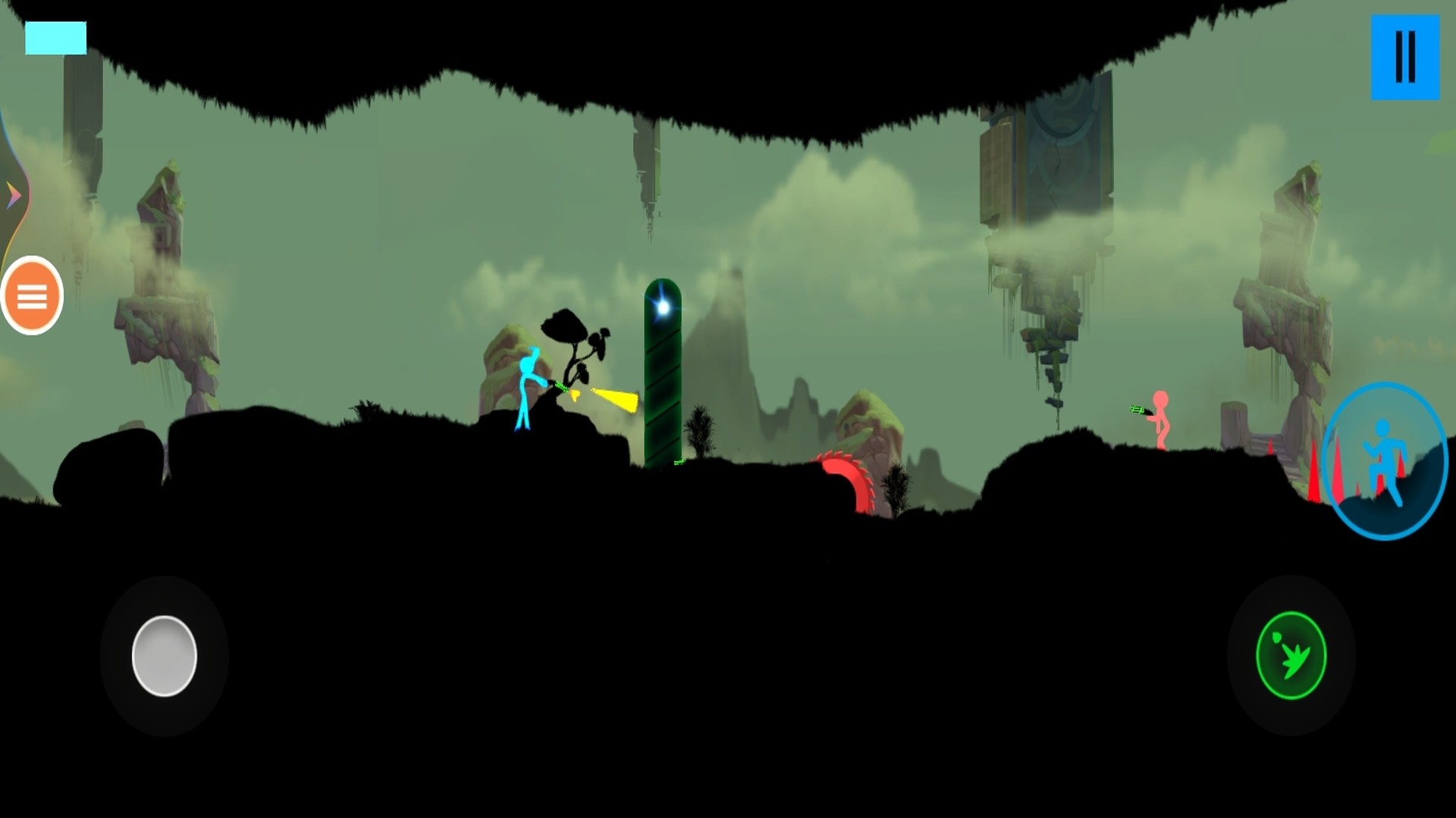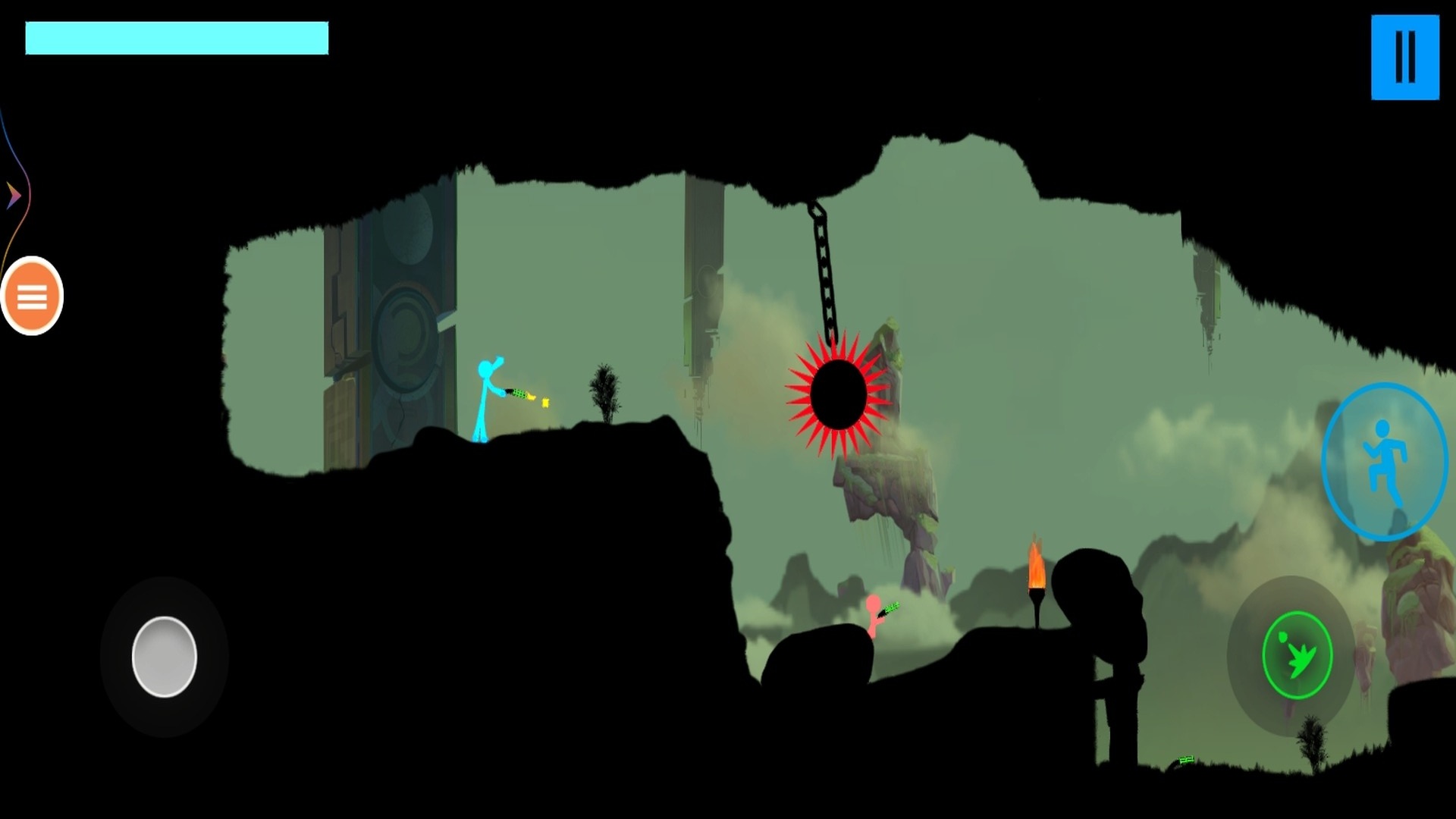 1、通过虚拟摇杆与技能按键,操控火柴人移动、跳跃与攻击。结合简单的方向与按键组合,即可施展连续攻击或将对手击飞出局。