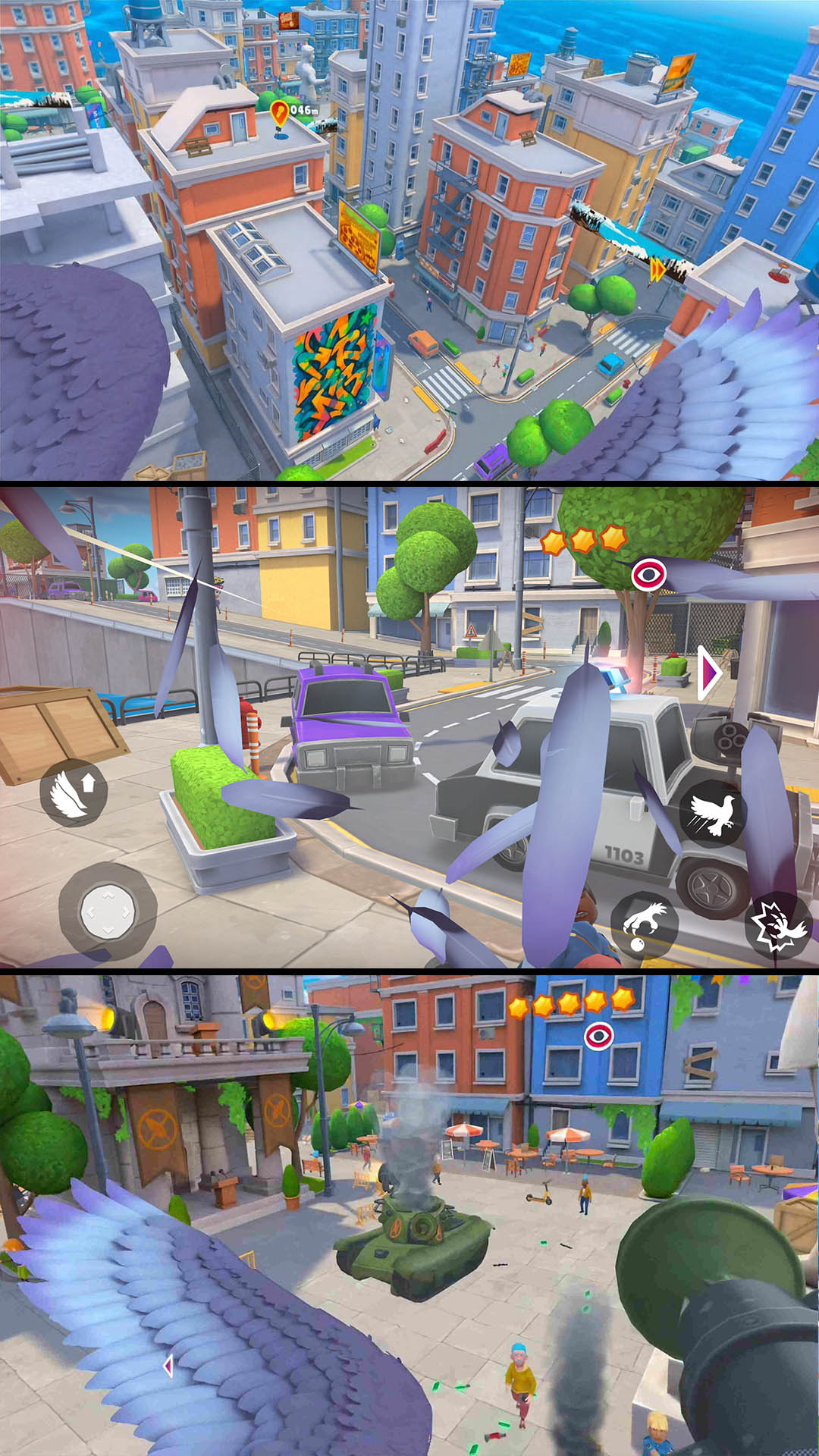 2、冒险闯关融合轻度解谜元素,需要观察路人行动路线,规划俯冲时机,才能高效完成整蛊任务。