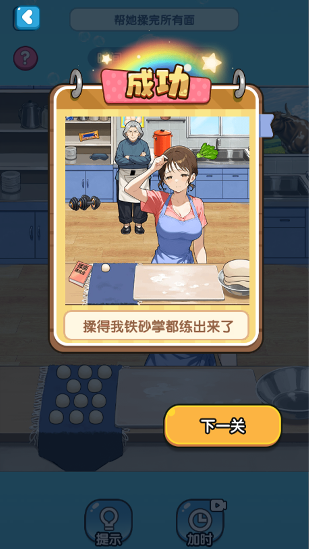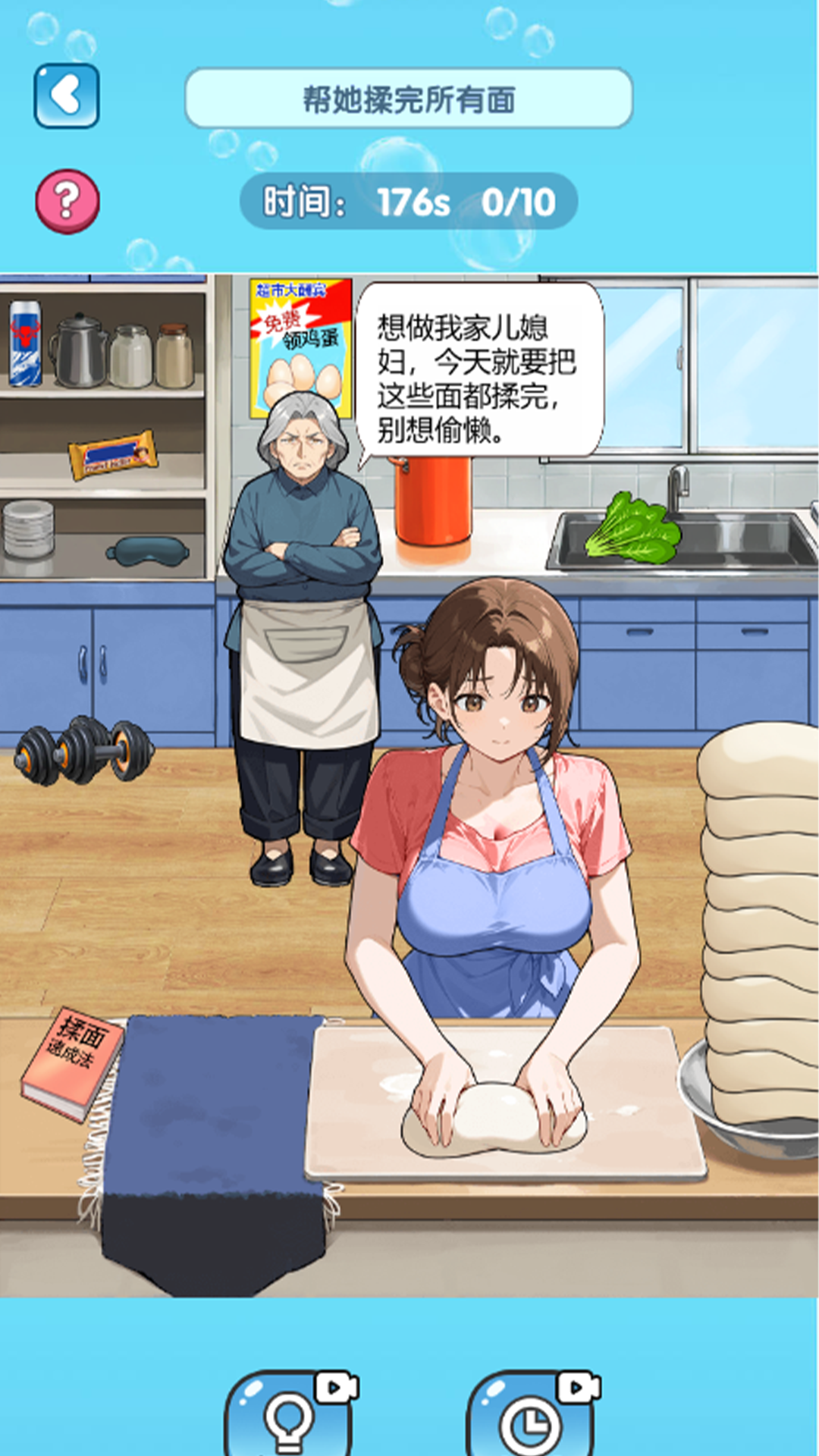 2、选择不同的关卡内容,比如儿媳揉面、怀旧奶奶小炒等。