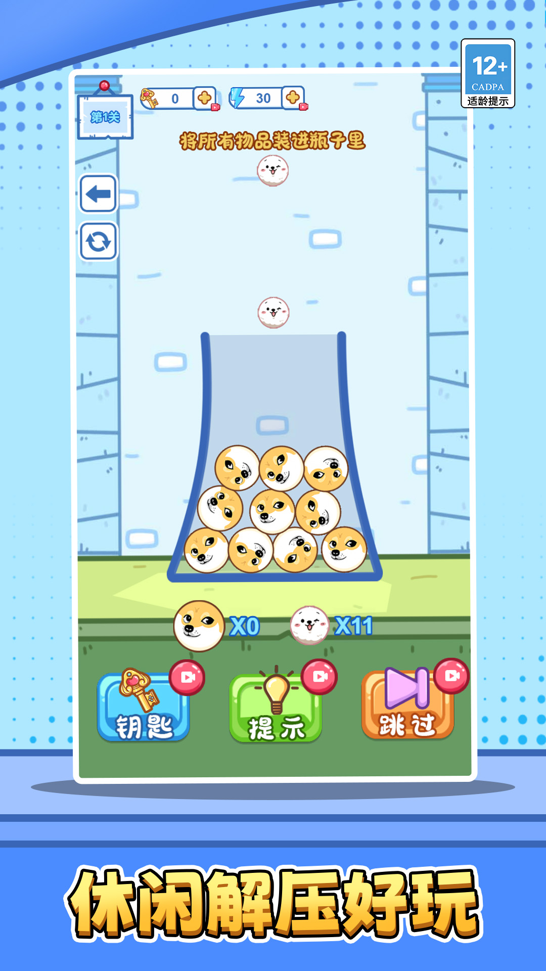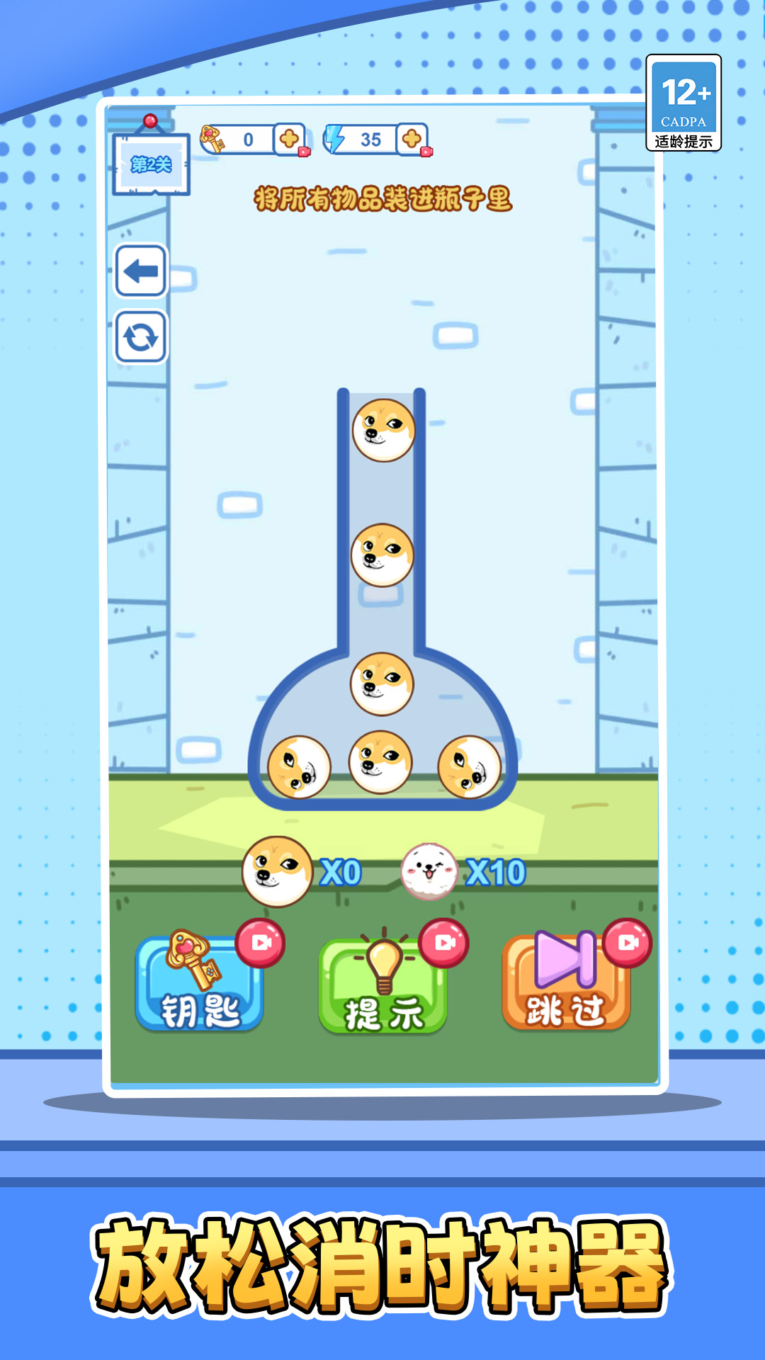 1、核心玩法极度解压,将狗头塞进瓶子的瞬间配合滑稽音效和动画,能瞬间释放现实生活中的紧张压力与烦躁情绪。