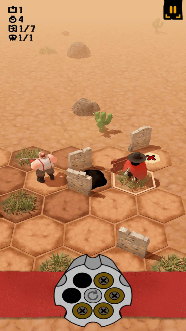 1、玩家可以向身边的格子进行移动,利用左轮来射击对应方向敌人。