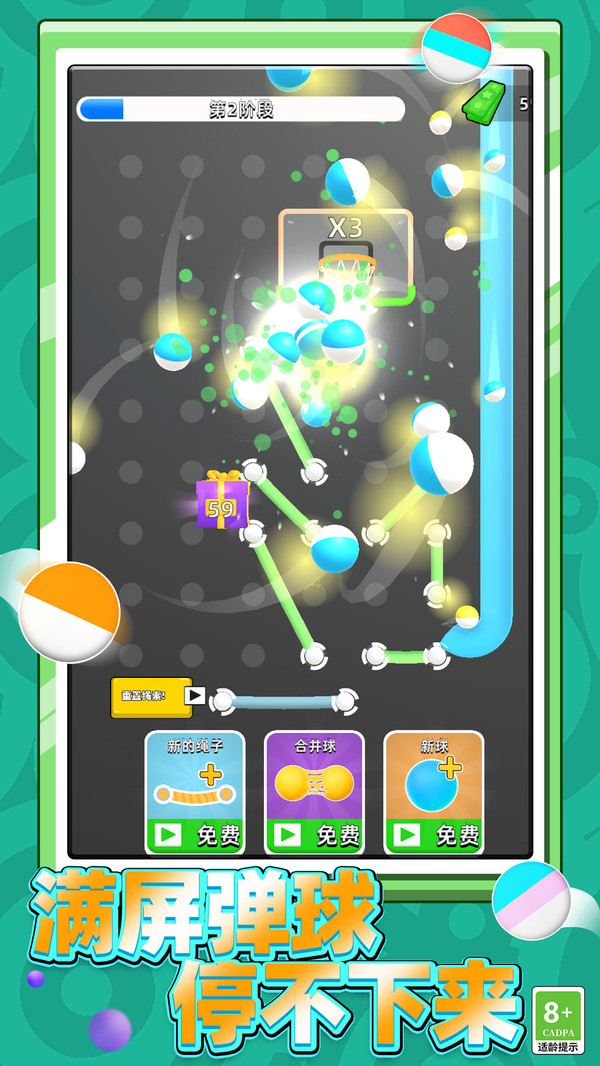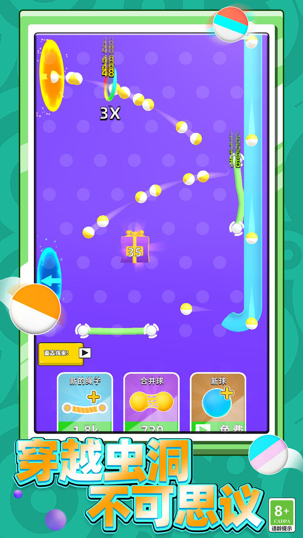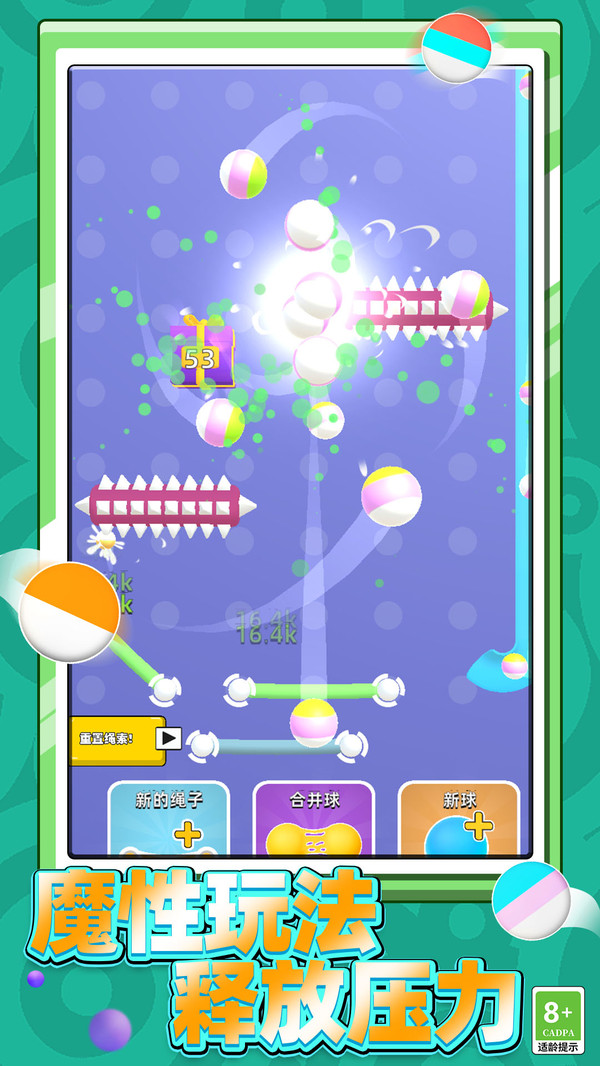 2、利用收益,玩家可以购买新球,将小球进行合并可以提升收益的效率。