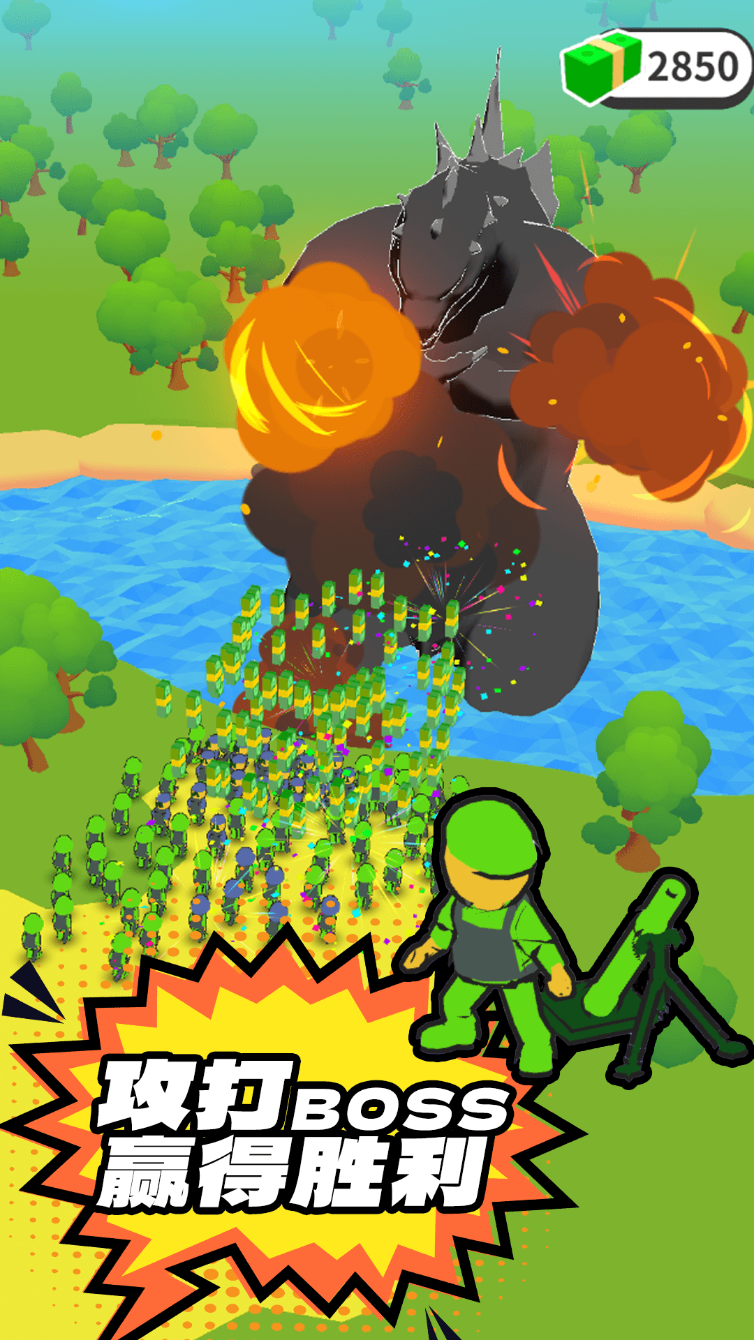 2、生产基础作战单位并派遣至战场,相同单位靠近时会自动合并,升级为战斗力更强的精英勇士。