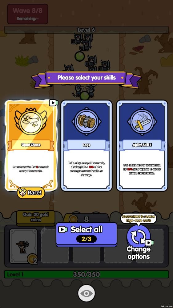 1、独创的割草式清屏机制结合传统塔防玩法,当英雄释放终极技能时可瞬间清除大量敌人带来解压体验。