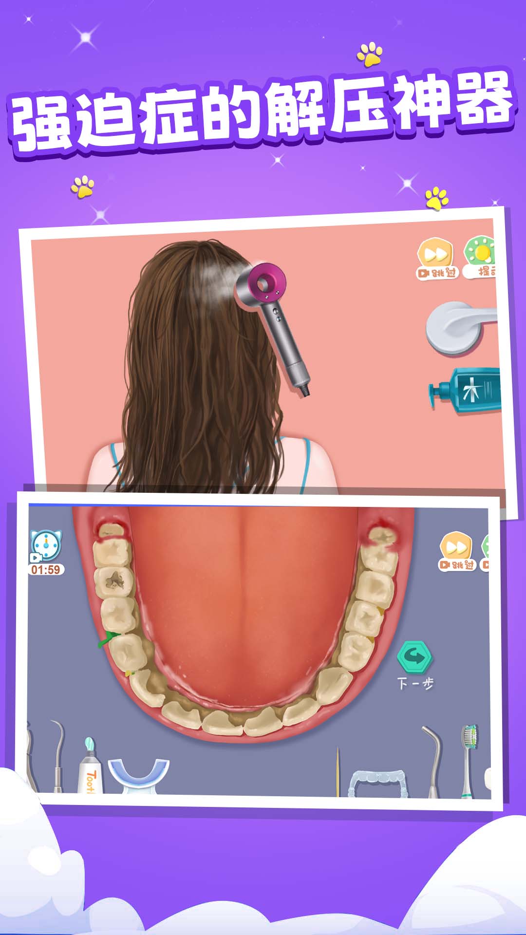 2、游戏中有诸多精彩的关卡,比如脸部清洁,头发护理、菜刀翻新等。