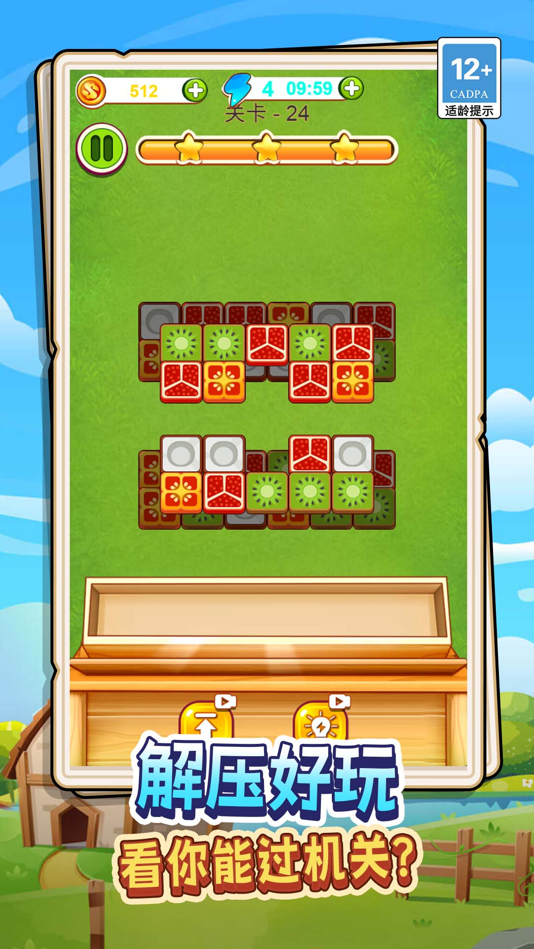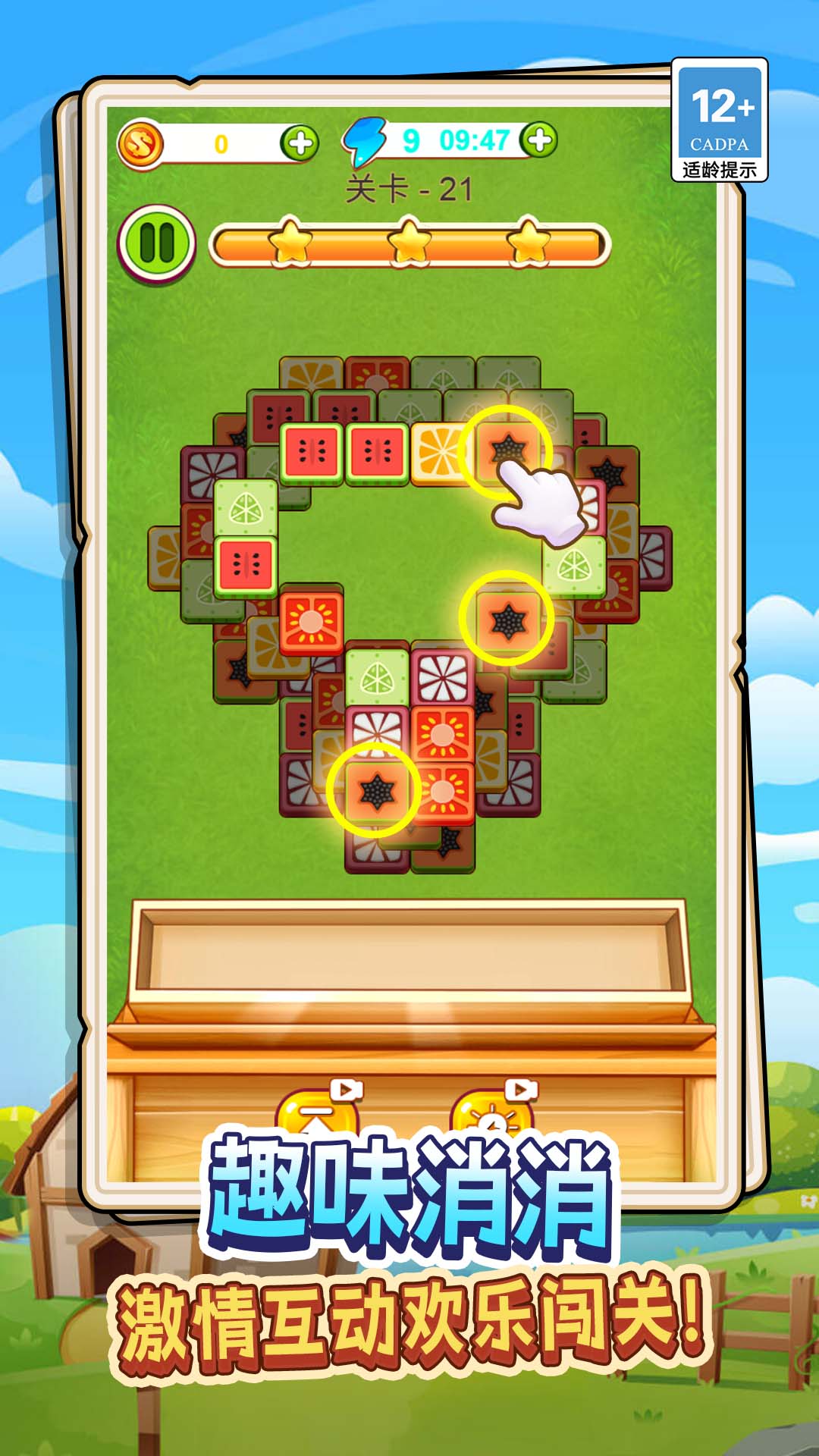 3、消除图案时可能触发动态效果,如图案旋转、跳跃或发出趣味音效,成功通关后,奖励多多,提升玩家成就感。