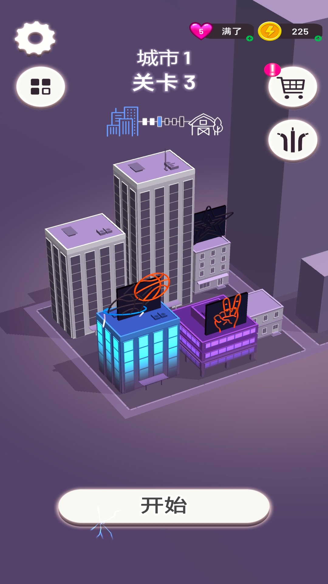 4、在限定步数内完成挑战,点亮所有灯光,即可成功通关,解锁下一关卡的神秘面纱。