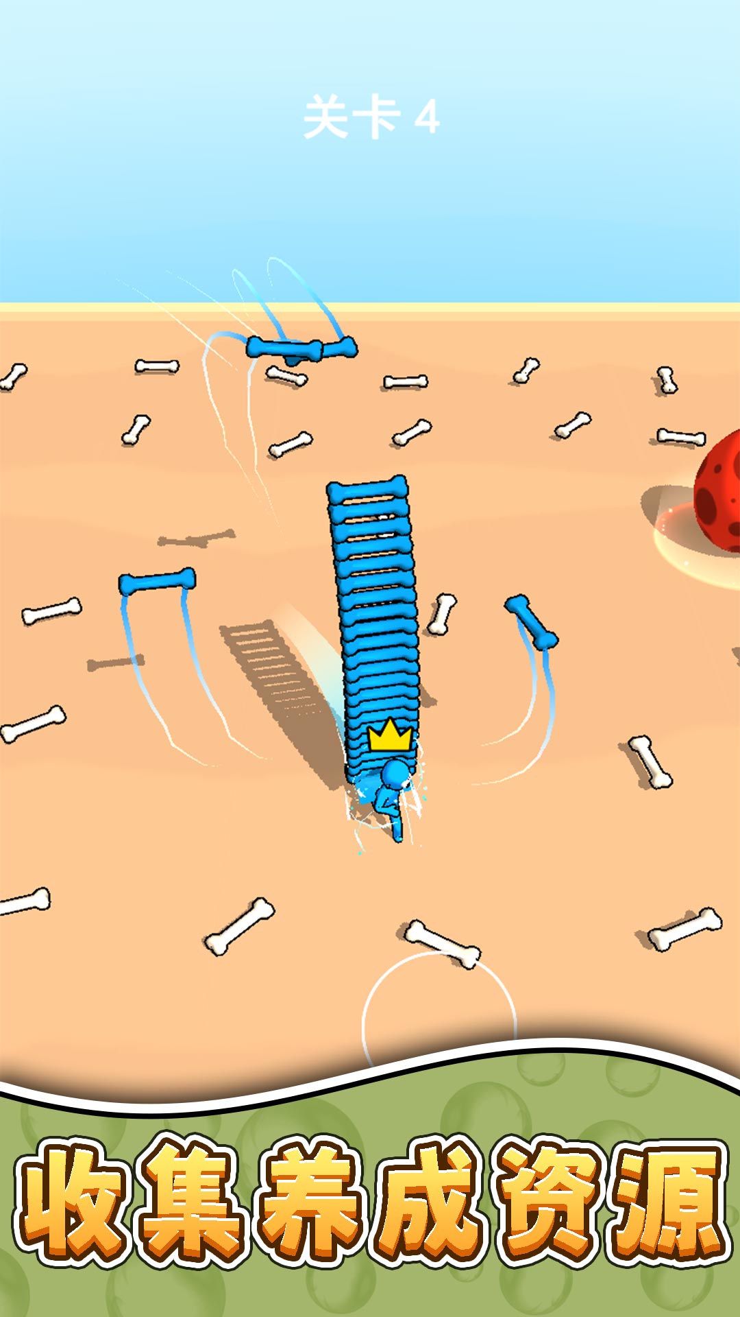 4、开启新的挑战赛,继续的收集大量的骨头,收集的越多孵化的恐龙越大。