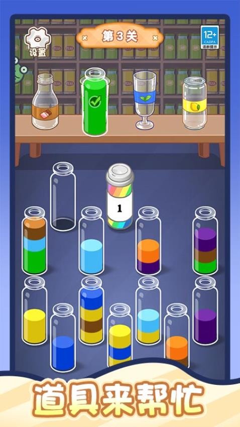 1、点击一个瓶子选择液体,再点击另一个瓶子倒入。