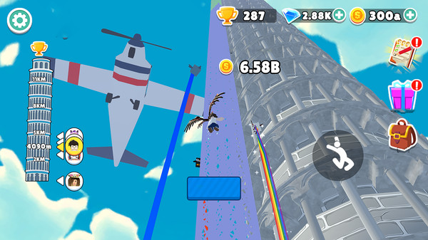 3、成功抵达当前高塔的顶层平台后,并非任务结束。玩家需成功跳下即视为本次挑战圆满结束,并依据高度结算分数。