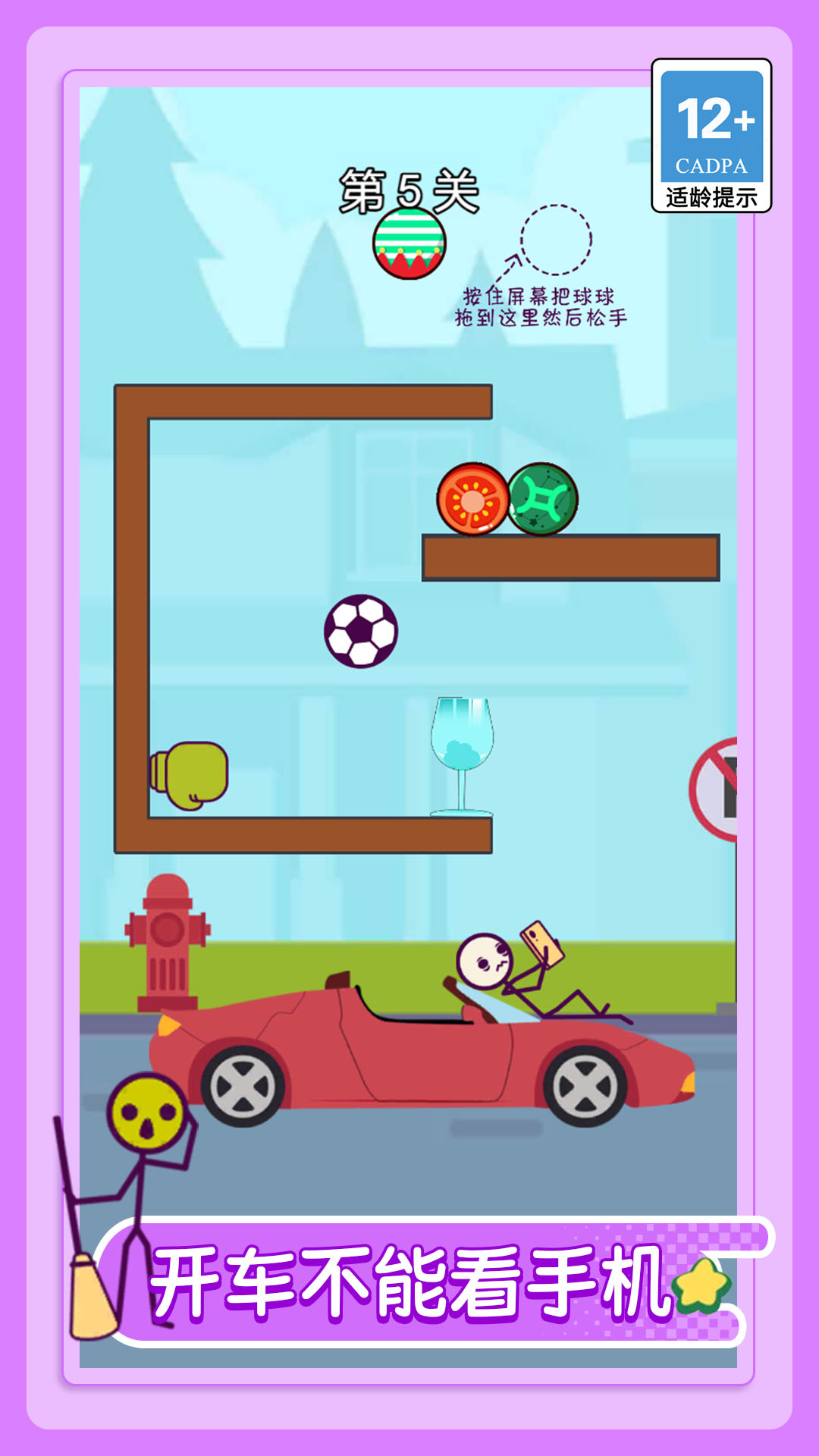 3、通过手指按住屏幕并滑动,来调整小球下落的初始角度和力度,松开手指即可释放小球。