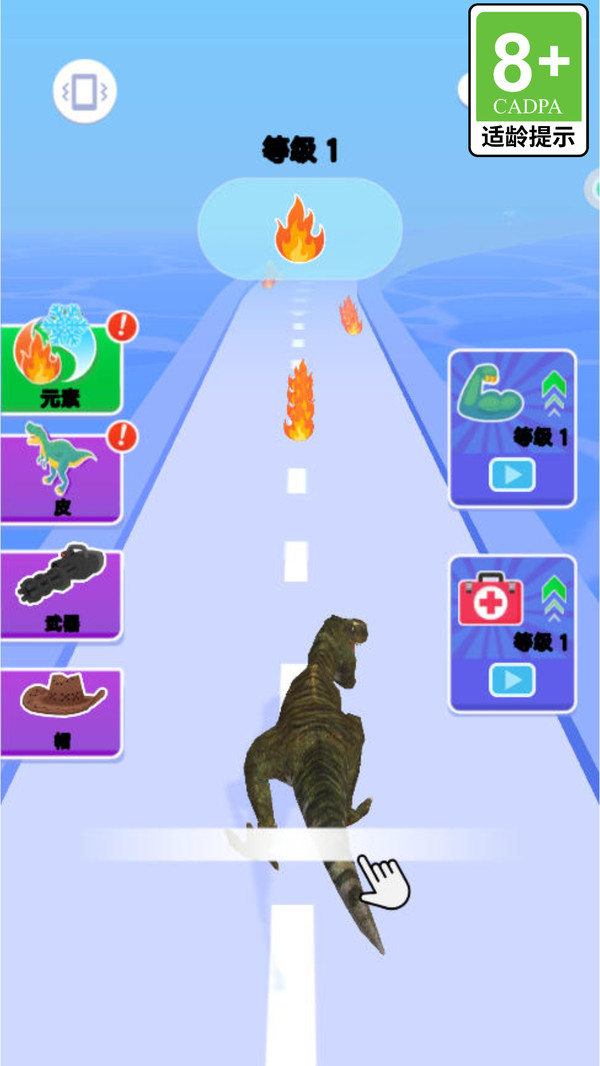 3、每个关卡开始之前,玩家可以对恐龙角色进行强化,提升力量以及血量。