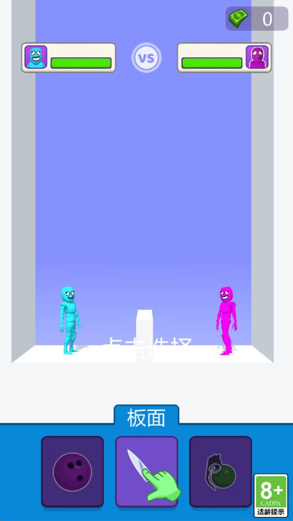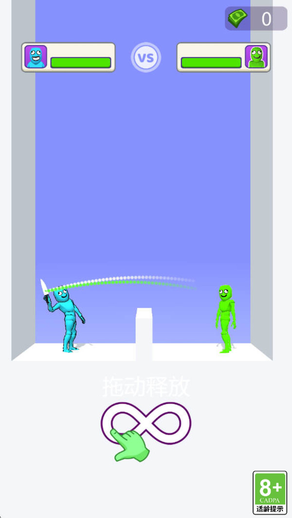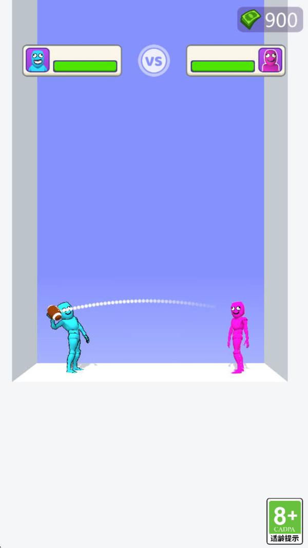 2、点击屏幕滑动调整你的攻击方向,松开手即可向对手扔出,率先击败他获胜。