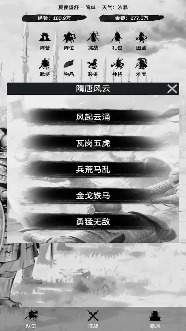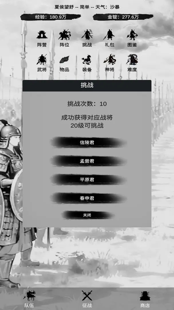 2、通过挂机和主动征战收集新武将与资源,投入资源针对性养成核心武将与装备;
