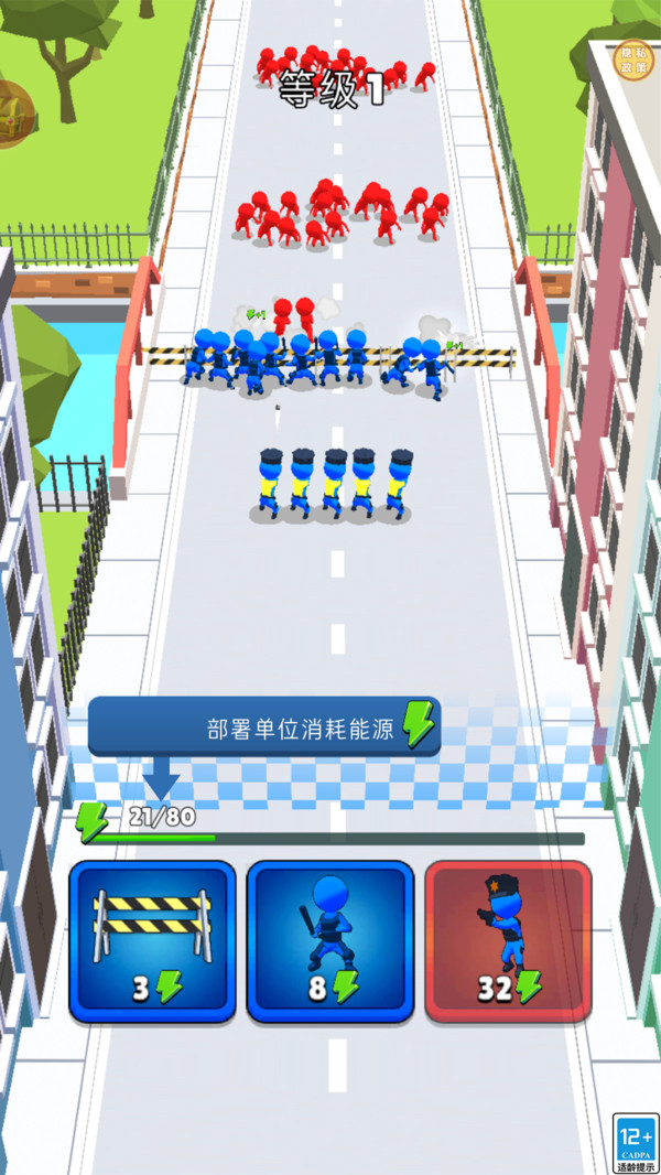 终极防卫是一款街头防卫玩法的策略游戏,作为战术指挥官,你将临危受命,带领警力展开一场至关重要的街头防暴阻击战。利用有限的警力资源,在关键路段构筑防线,设置路障、部署警员,利用一切手段延缓并击退暴徒的冲击。每守住一波进攻,你都能获得资源,升级你的队伍甚至呼叫载具支援。一步步夺回街道的控制权,平息这场骚乱,恢复城市的秩序。