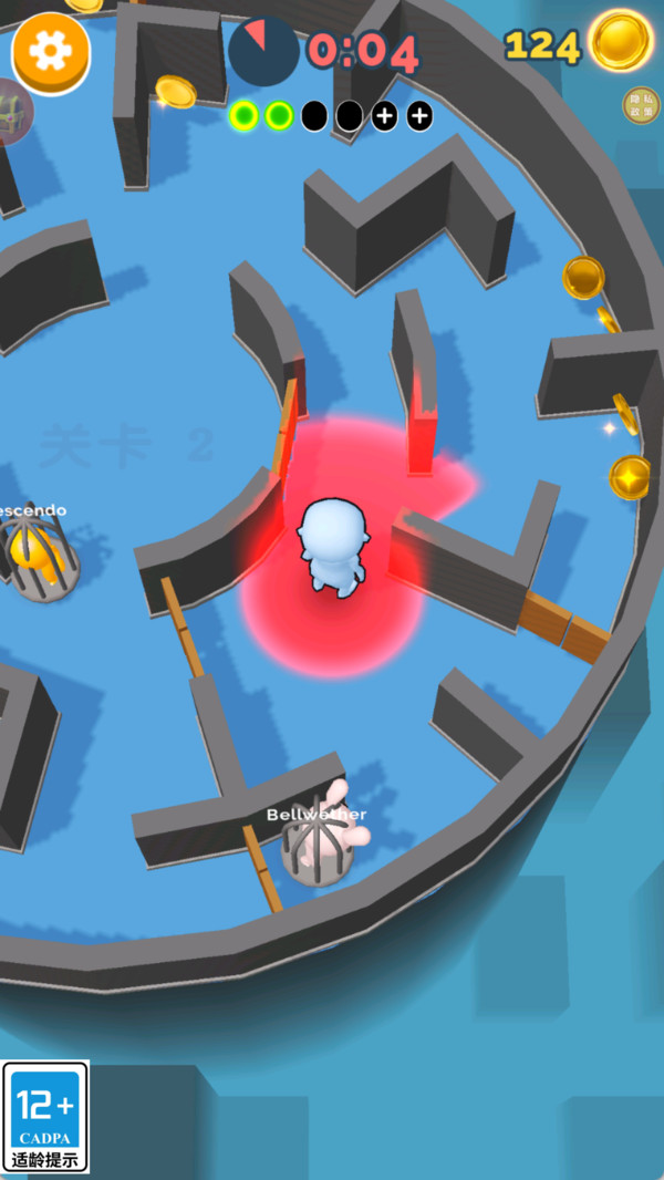 2、每个关卡的场景设定不同,利用场景来躲避寻找者的视线,收集场景中的金币钥匙。