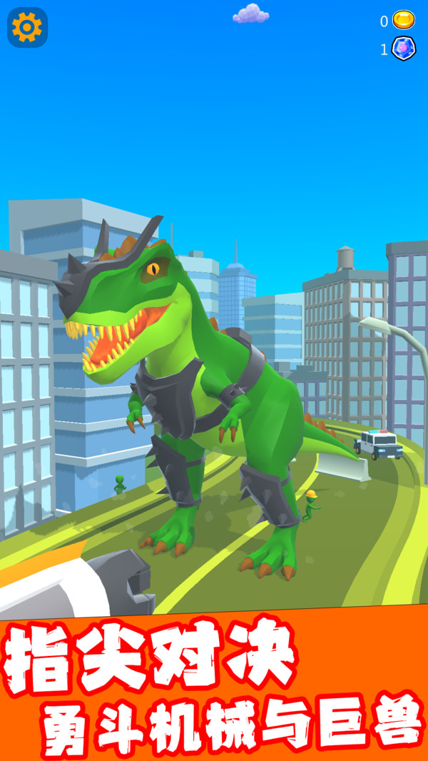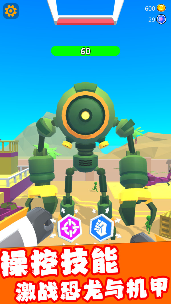 2、除了经典的机器人对手,战场中还会出现如暴走恐龙等中立巨型单位,为对局带来额外的变量与策略考量。