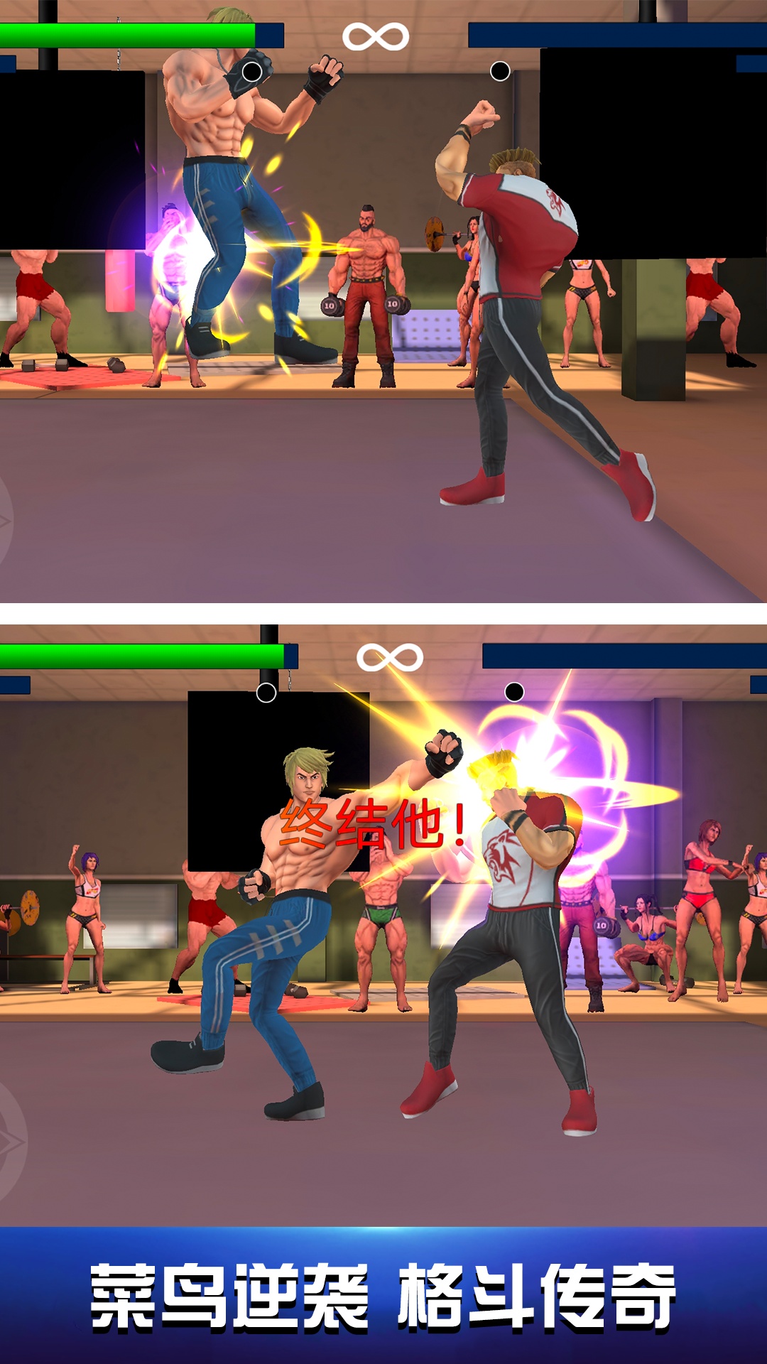 综合格斗家是一款自由养成格斗英雄开始热血作战的动作闯关游戏,涵盖拳击、踢击、摔跤、地面压制、关节技等综合格斗核心技术,玩家可自由组合站立打击与地面缠斗技巧。角色动作由职业格斗家参与录制,确保每一招式符合力学原理,如地面缠斗时的身体扭转、关节技施加的杠杆效应,均通过高精度动画呈现,提升操作代入感。