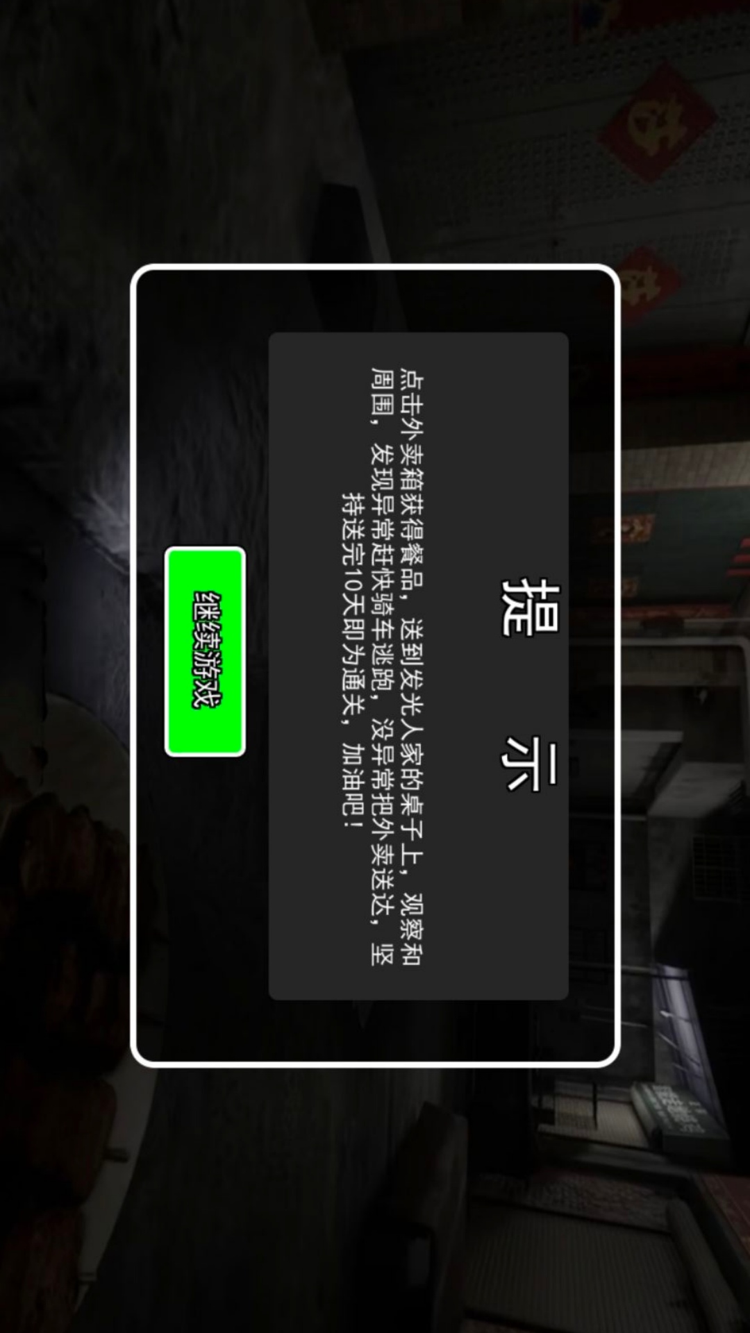 3、正常场景中,顾客家门牌号为白色,但异常订单的门牌号可能泛着血红色微光,需要你小心的进行观察。