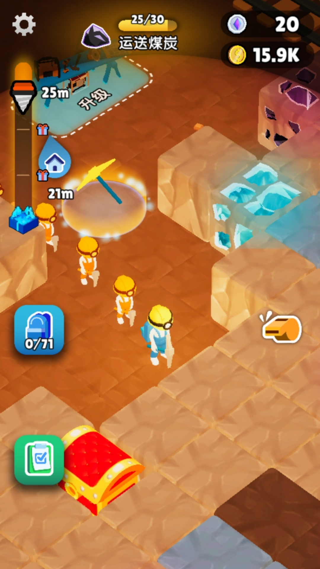 挖矿大冒险是一款趣味十足的模拟经营矿场游戏,在地下矿场开始挖矿,提升工具的效率运输资源获取金币,收i就丰富的藏品,扩大你的矿场规模,融合了地下城探索的刺激、矿场经营的谋略与宝藏收集的狂热的硬核模拟游戏。在这里,你将从一个手持旧镐的孤独矿工,逐步成长为执掌庞大矿业帝国的地心领主,经营自己的专属矿场,赚取丰富的金币。