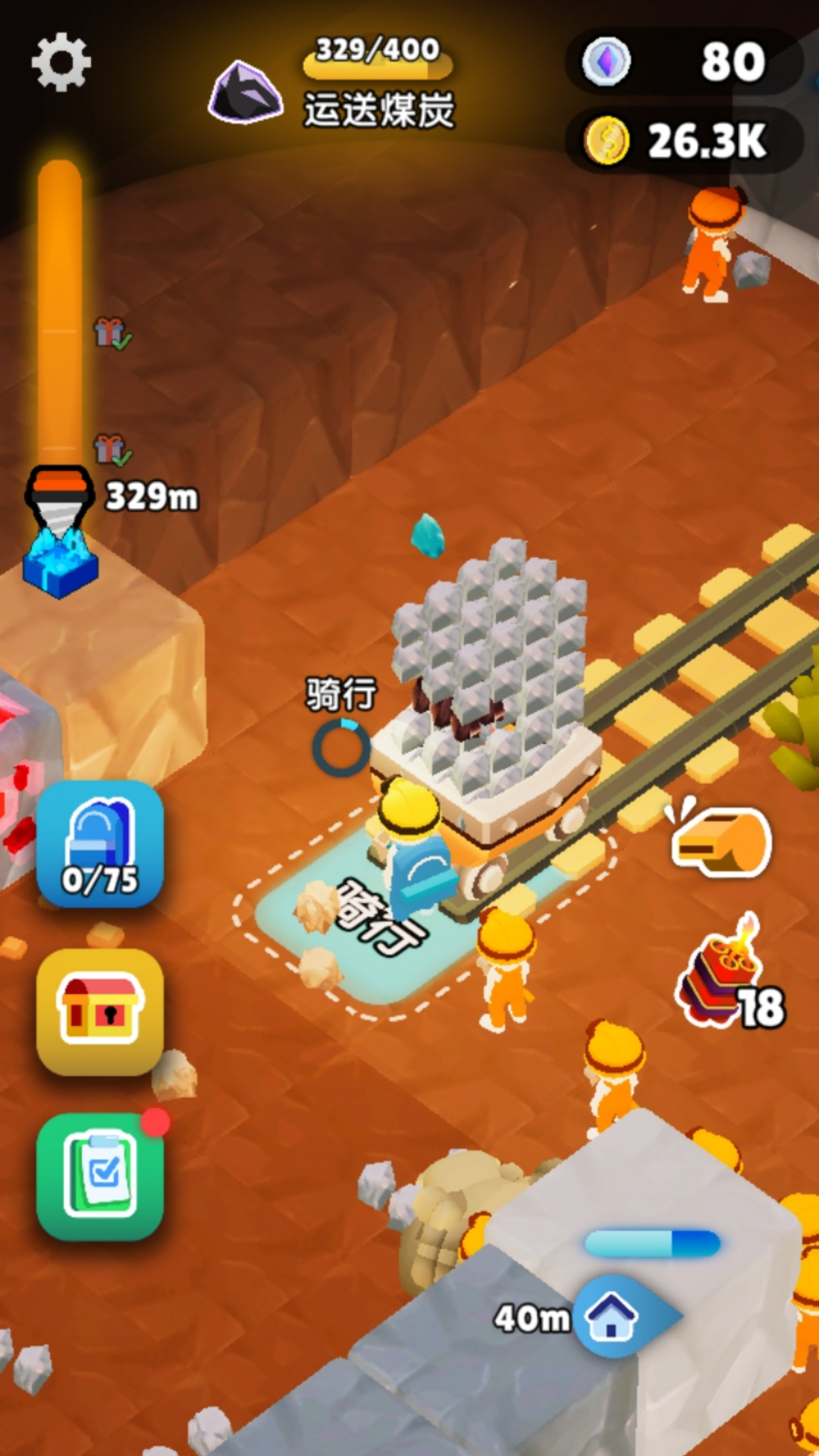 2、你需要合理编队,派遣他们前往不同深度和类型的矿层进行作业,并通过培训提升他们的技能;