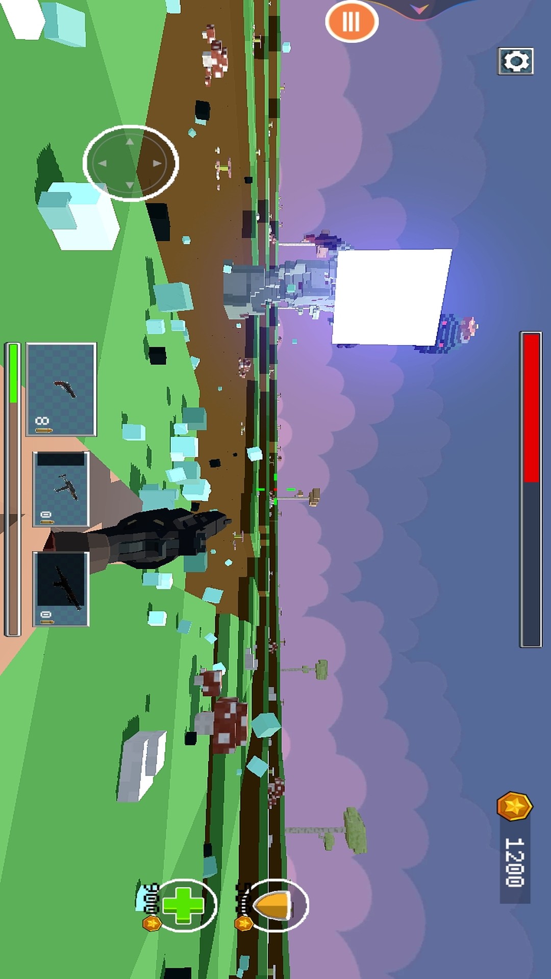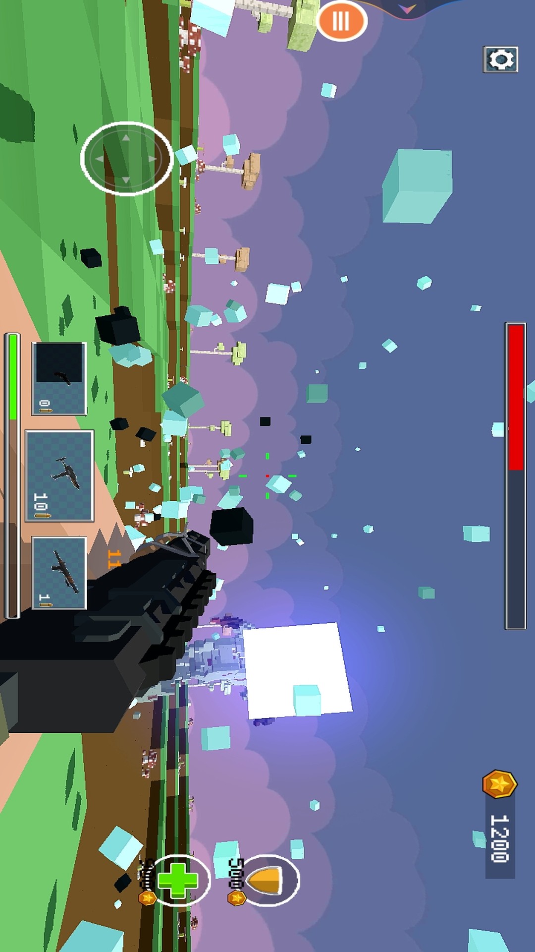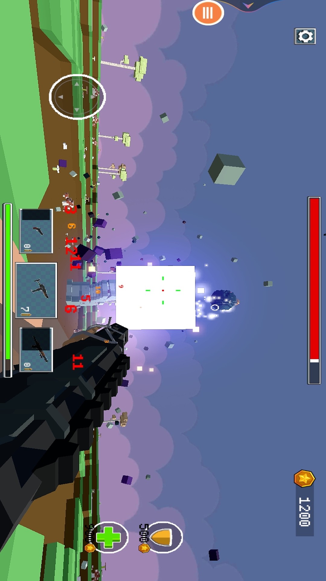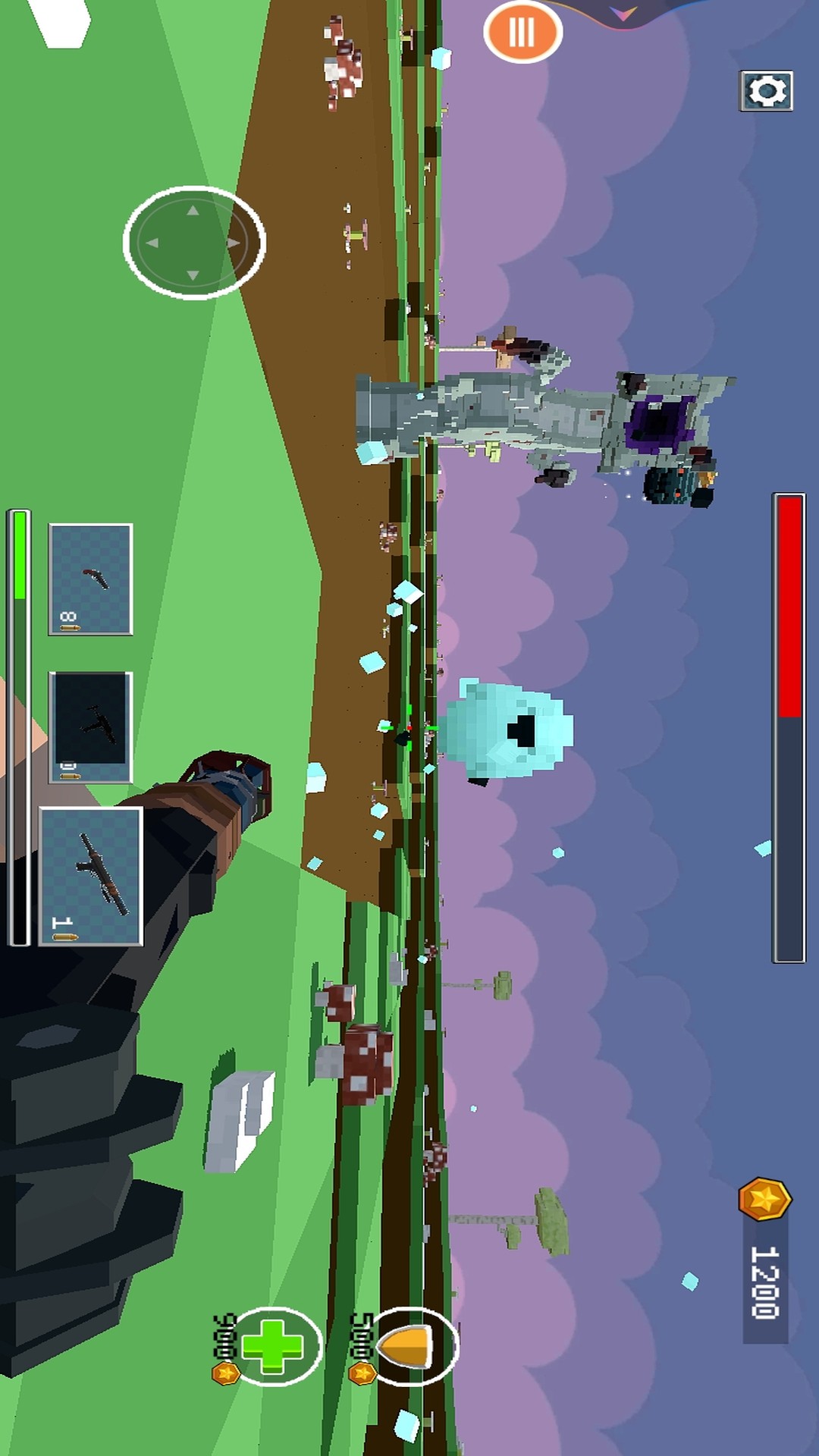 1、进入游戏,第一人称视角拿起武器开始射击,精准射击不断袭来的像素怪物,获取奖励。