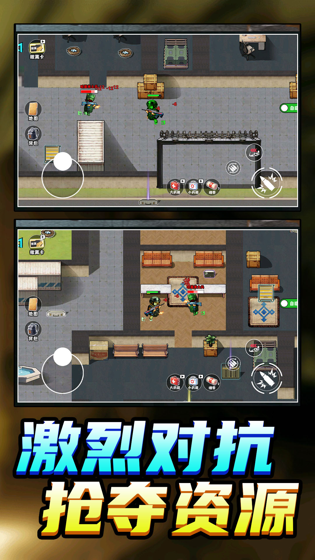 3、需在地图中翻找木箱、集装箱等,搜集弹药、护盾、增速道具等物资,同时警惕敌对玩家的突袭。