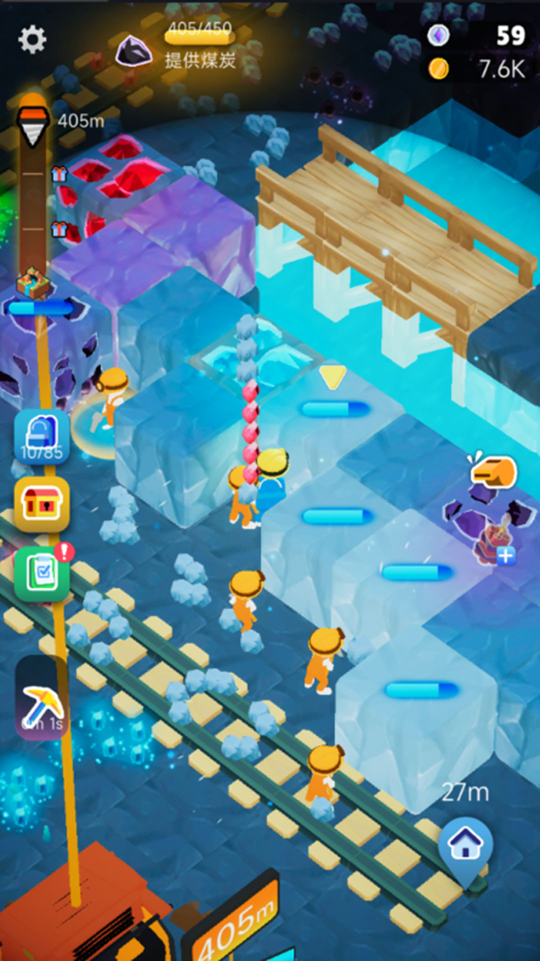 3、画面色彩明快,角色与矿物设计充满萌趣,配合轻松音效,营造出愉快的游戏氛围。