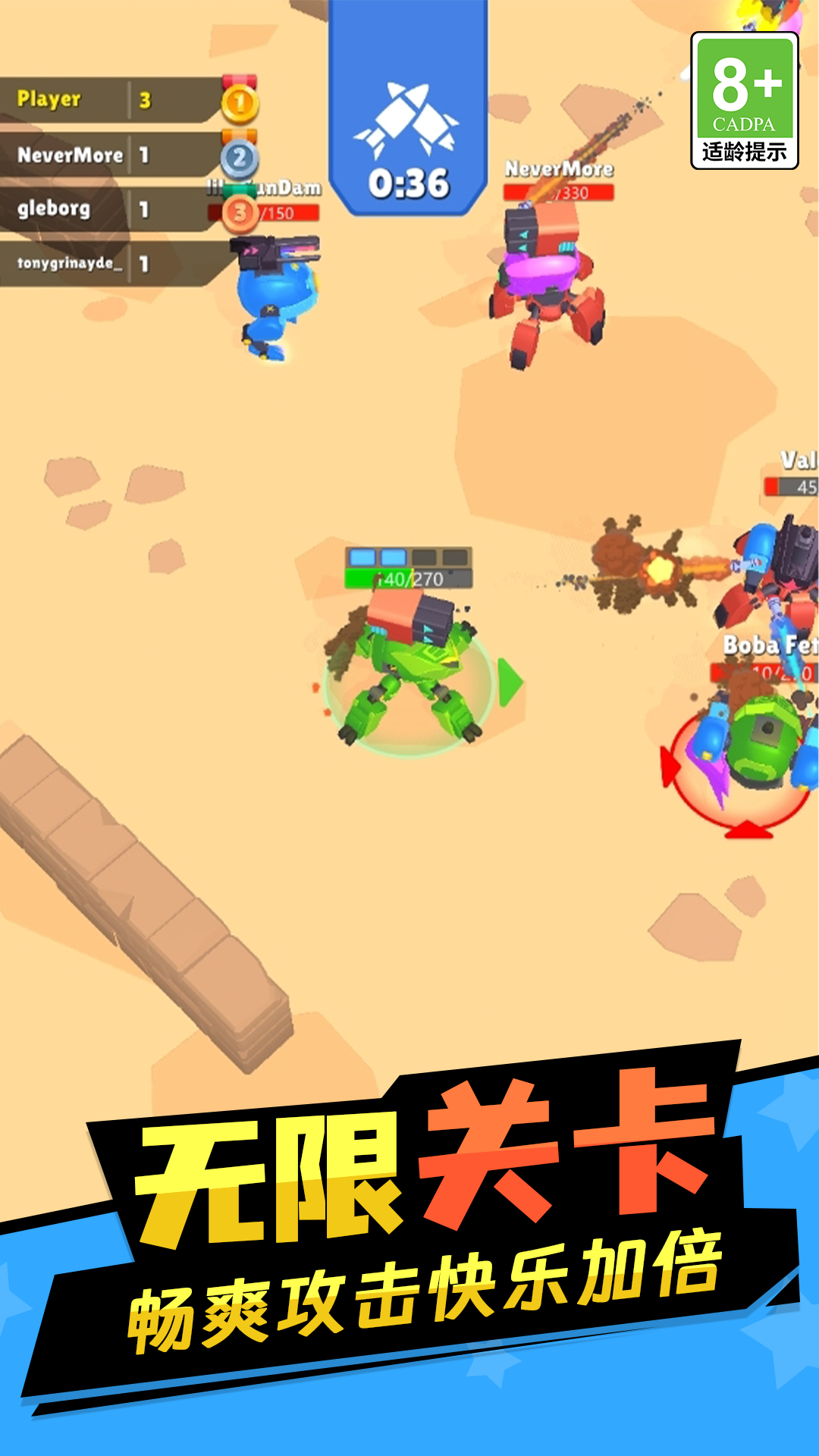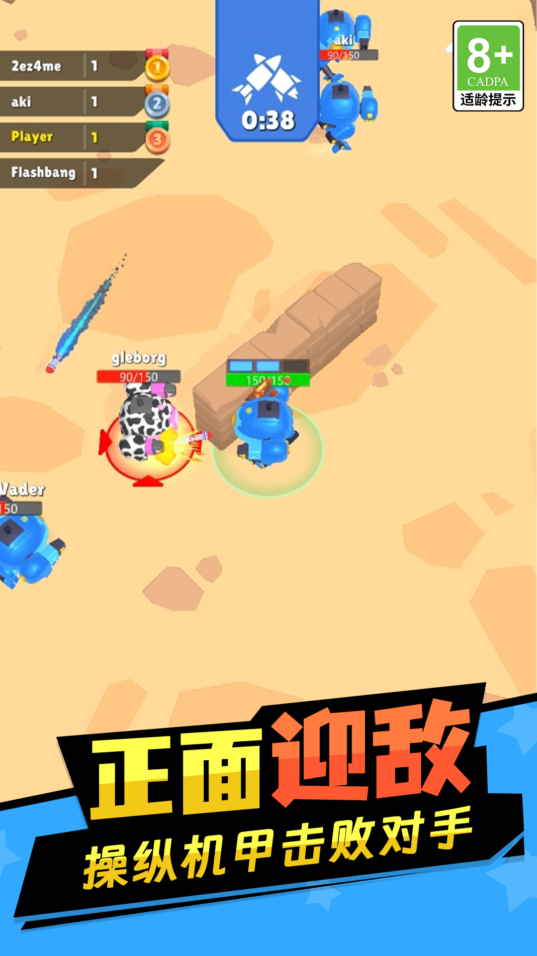 3、攻击机甲特定部位,如武器、发动机可造成额外伤害或削弱功能,先击败对方或时间结束时血量高者获胜。