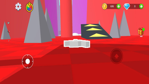 2、除了跳跃,游戏中存在特殊的光滑轨道。触碰后角色将进入高速滑行状态,体验风驰电掣的另类闯关感。