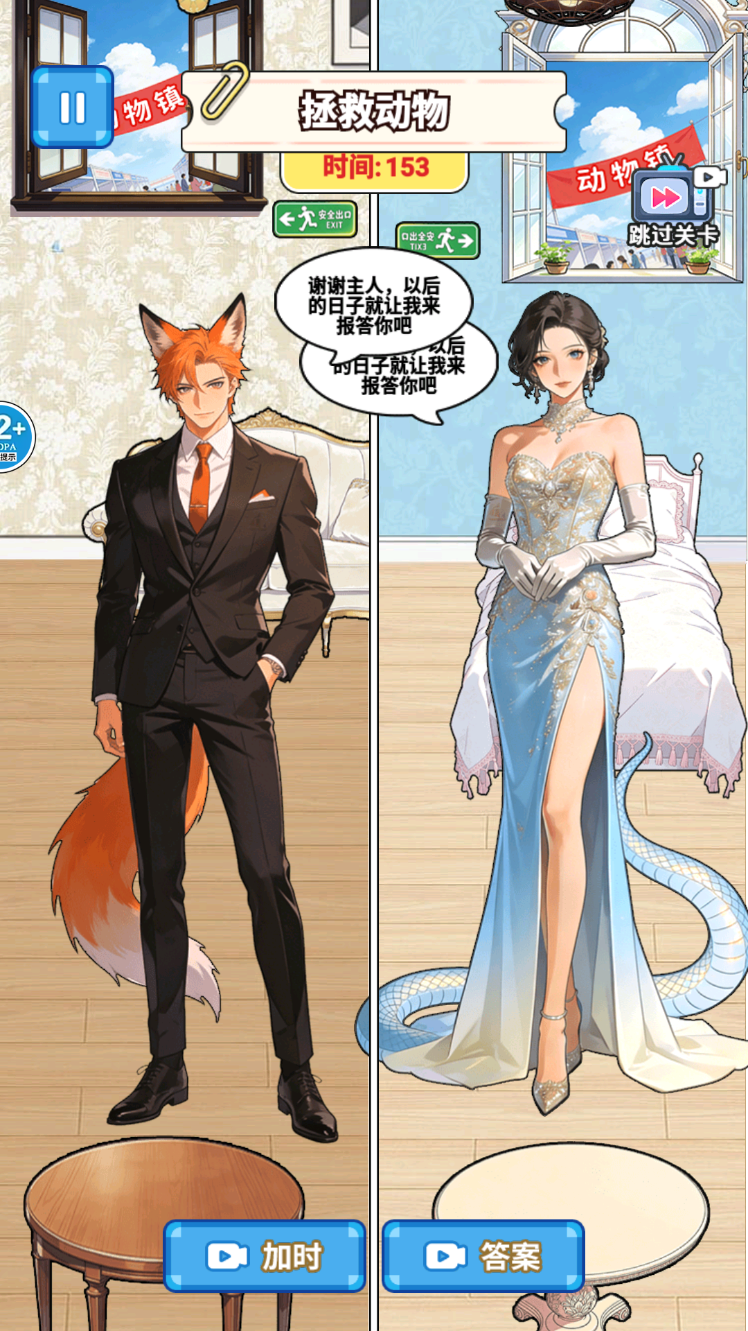 2、如果玩家选择偏爱某个动物角色,角色的形象可能会变得更加光鲜亮丽,达成报恩结局;