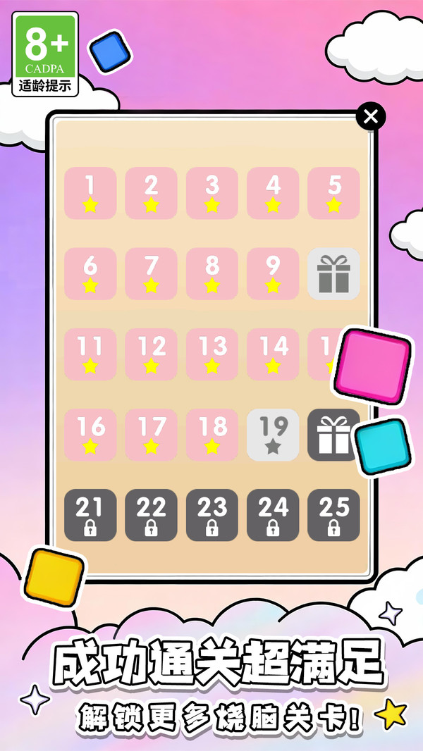 1、含有多样的关卡集引入,每个关卡集拥有100个关卡挑战。