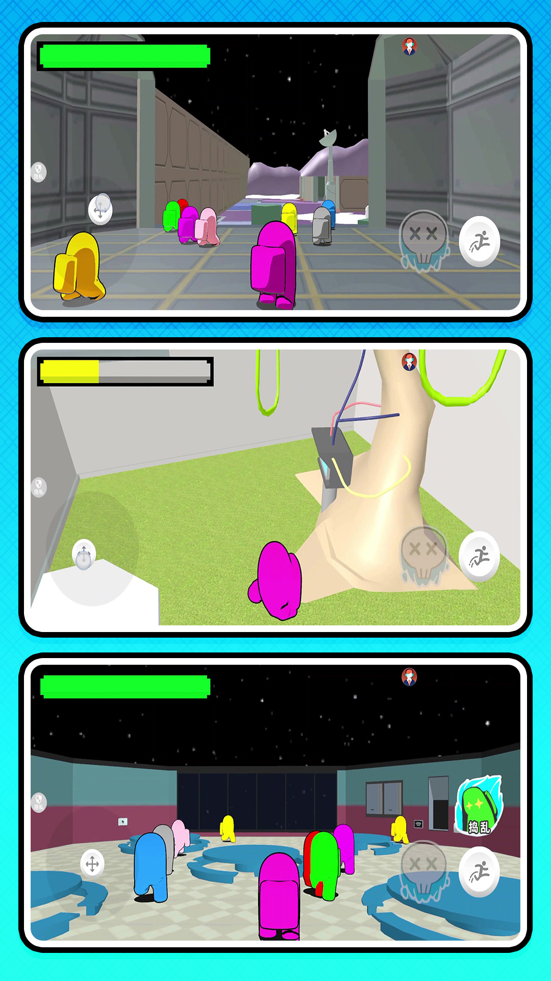 1、进入游戏,控制游戏中的小人开始移动,拖动虚拟摇杆开始闯关,寻找你的队友。
