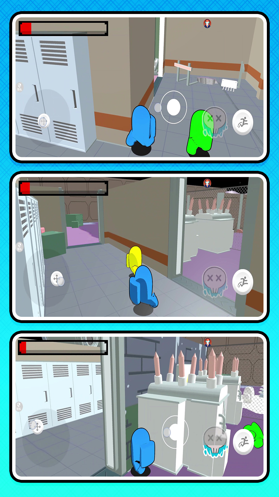 2、滑动屏幕查看周围的环境,寻找隐藏的队友,在不同的房间中进行查看。