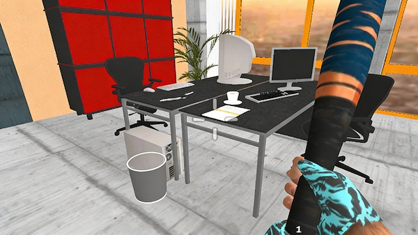 1、进入游戏,选场景模式,你的任务是粉碎办公室的所有物品,第一人称视角自由的移动。