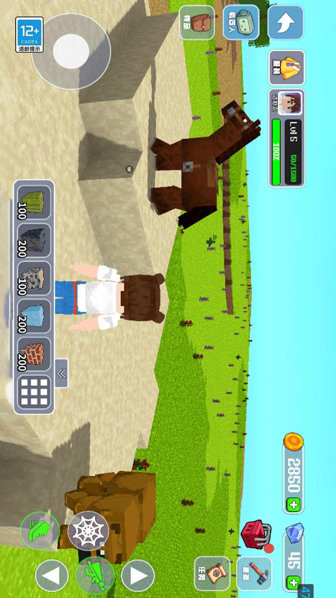 1、进入游戏,本关的主线任务是收集二十快方块,支线任务是和一只动物互动。