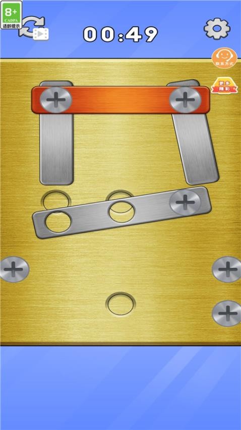 最强大聪明游戏是一款融合空间逻辑与策略拆除的创新益智闯关游戏,游戏中每块金属板上随机分布着不同数量的螺丝钉,玩家需要观察整个金属结构的分布规律,通过精准计算选择拆除顺序,最终安全拆卸所有螺丝,完成闯关,用极简的工业元素构建出丰富的策略深度,适合喜爱空间推理、享受系统性思考的玩家。