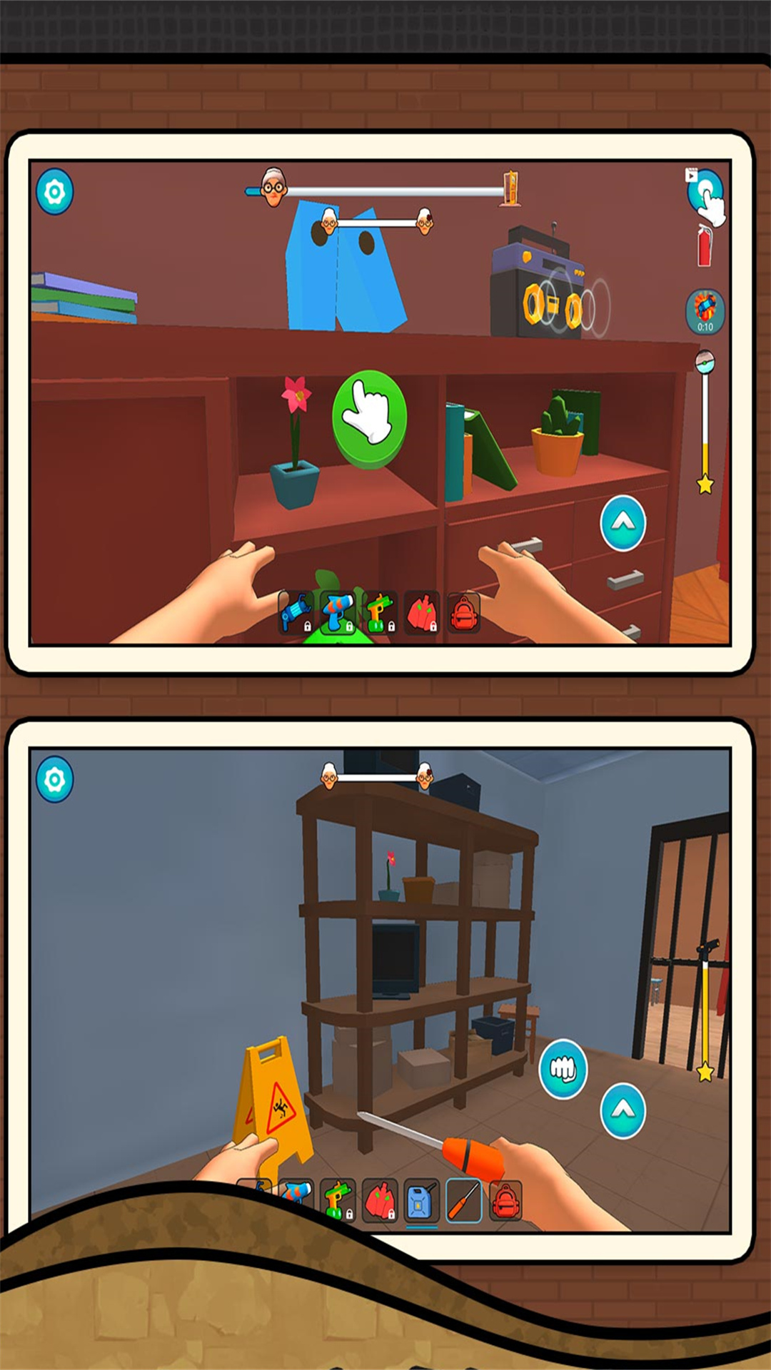 2、完成任务,继续下一个任务,躲到壁橱里,成功的躲到壁橱内,在壁橱观察教师内的环境。
