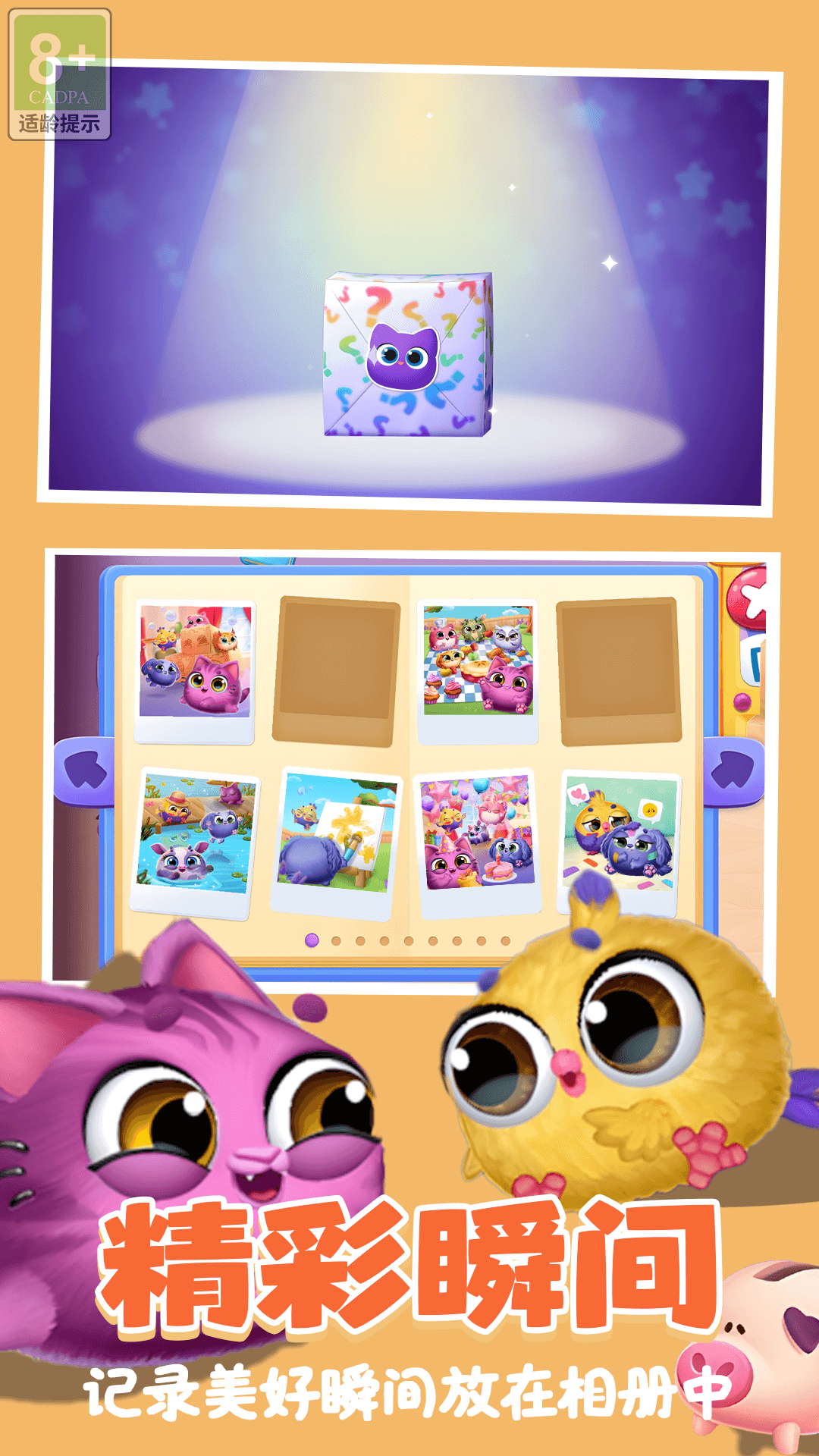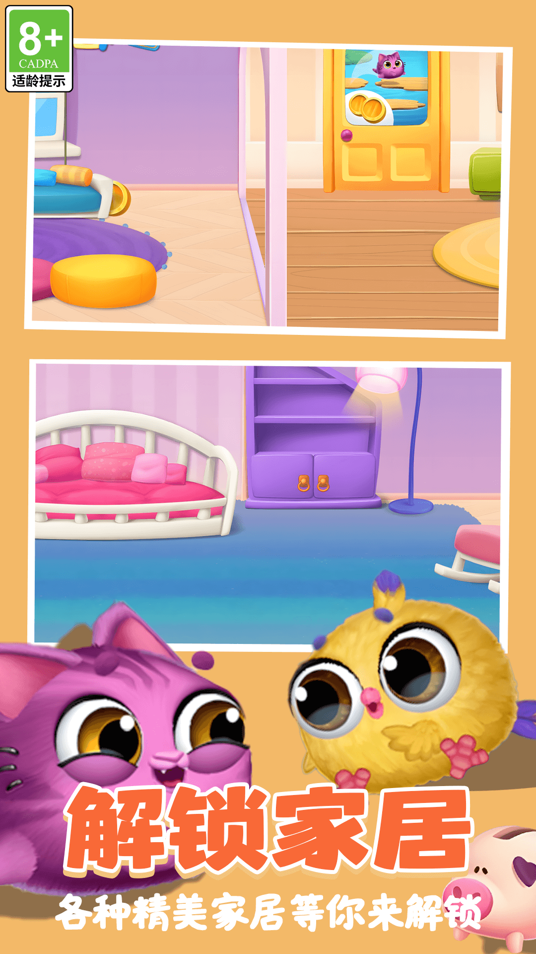 1、支持自定义猫咪外观,玩家可自由搭配毛色、瞳色、服饰等,打造独一无二的专属爱宠;
