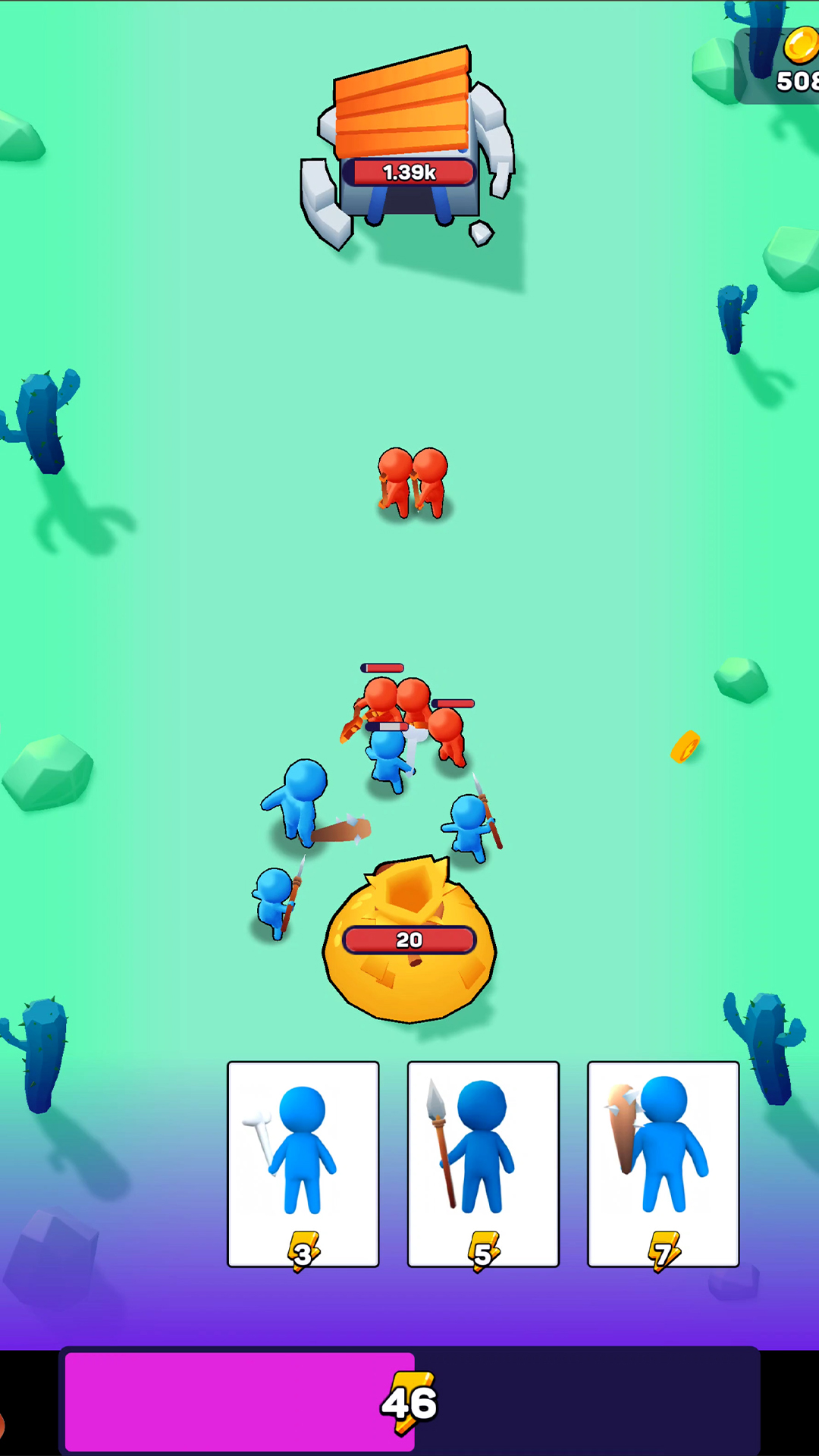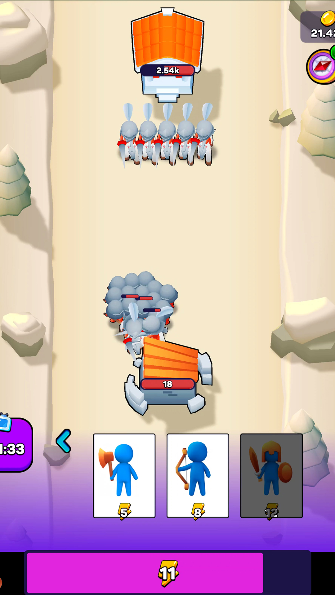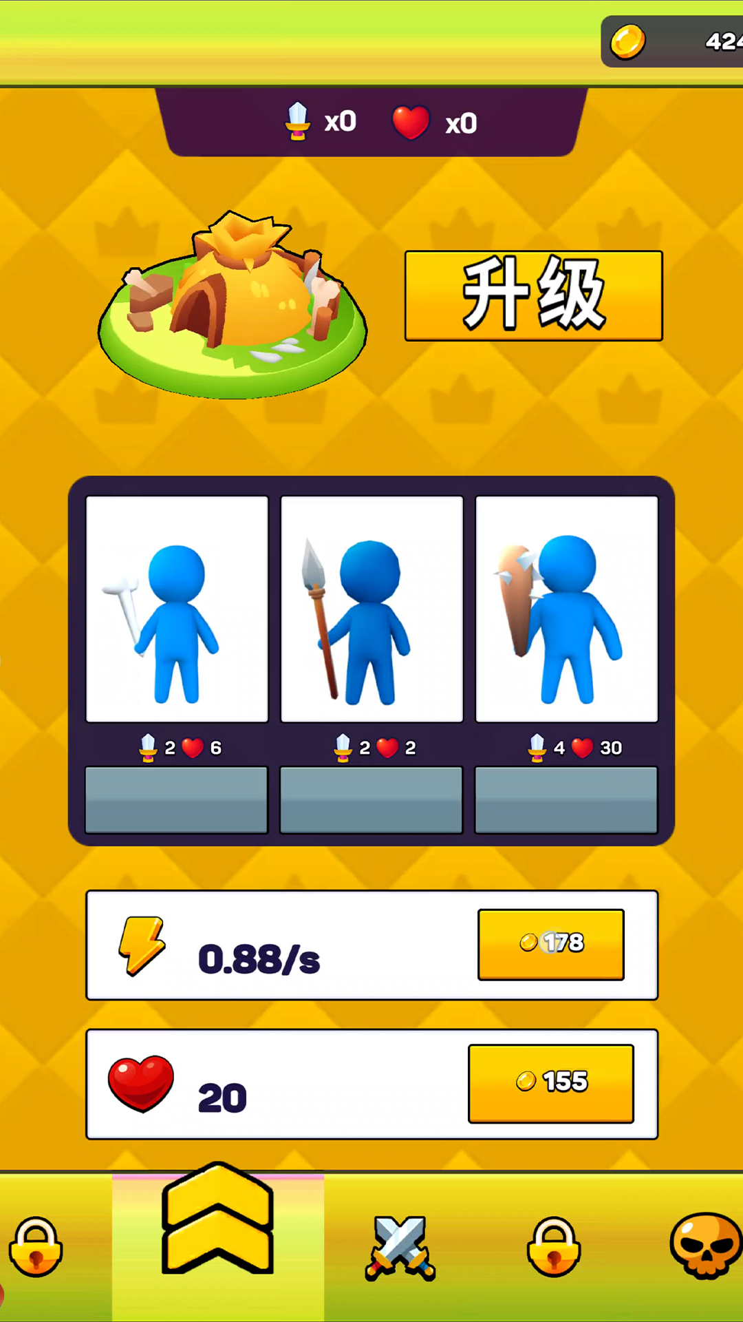 4、迎战强大的士兵,获取丰富的金币,点击提升等级,召唤更多的士兵。