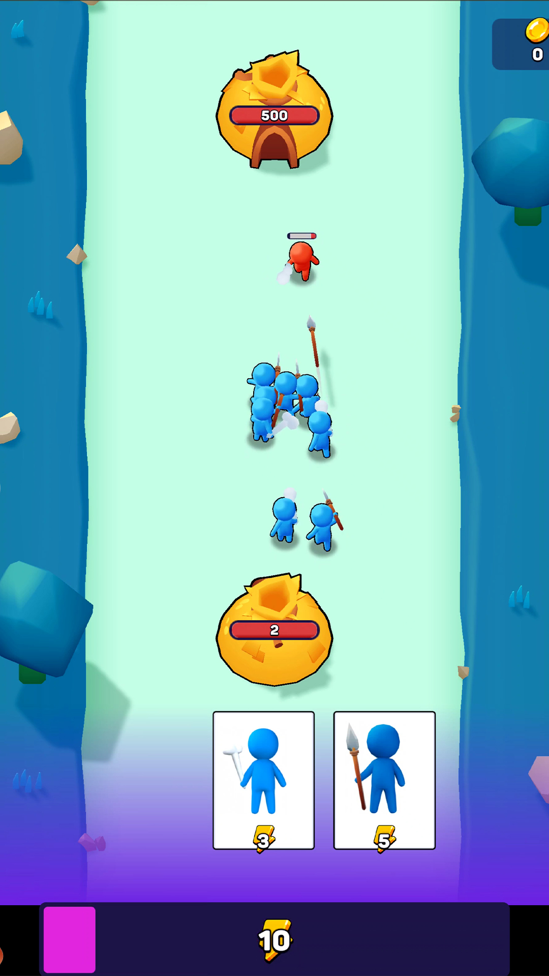 1、进入游戏,需要三秒钟即可点击释放你的士兵,需要的时间比较场,对方的士兵不断的前来攻击。