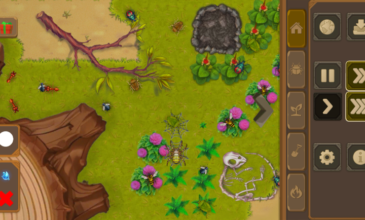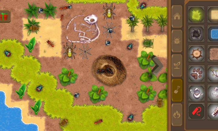 1、玩家将作为微观世界的创造者,从零开始生成地形并引入蚂蚁蜜蜂等多种昆虫以构建基础生态链。