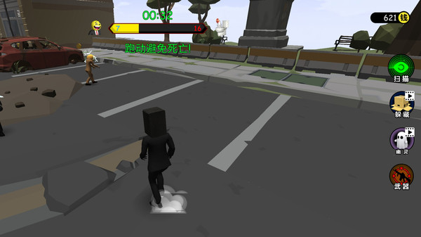 2、进入关卡中,使用轮盘来移动角色,躲避变异人的攻击,远离他们。