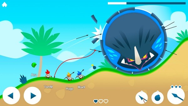 4、你可以滑动屏幕,拉出一条虚线,瞄准敌人进行射击!