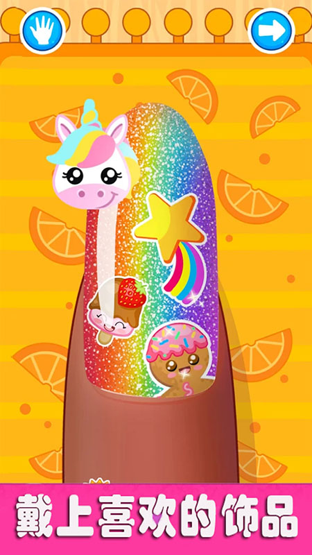 1、游戏操作采用直观的触屏拖拽与点击,完美模拟了真实美甲的手感,让玩家轻松享受创作的乐趣。