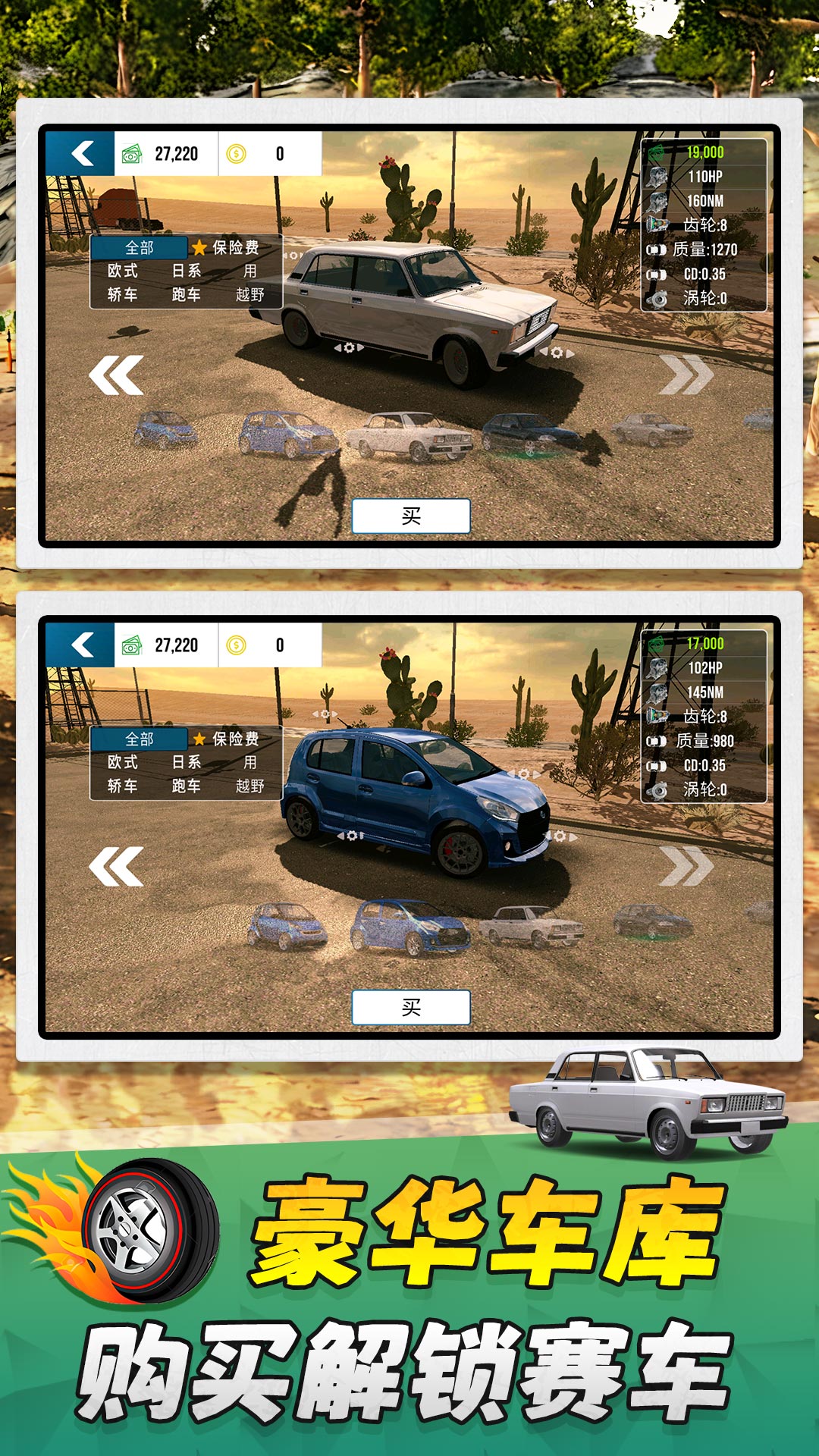2、包含多种车型的车库,每辆车都拥有独立的性能参数与驾驶特性,玩家可通过完成任务获得奖励,逐步解锁并拥有它们。