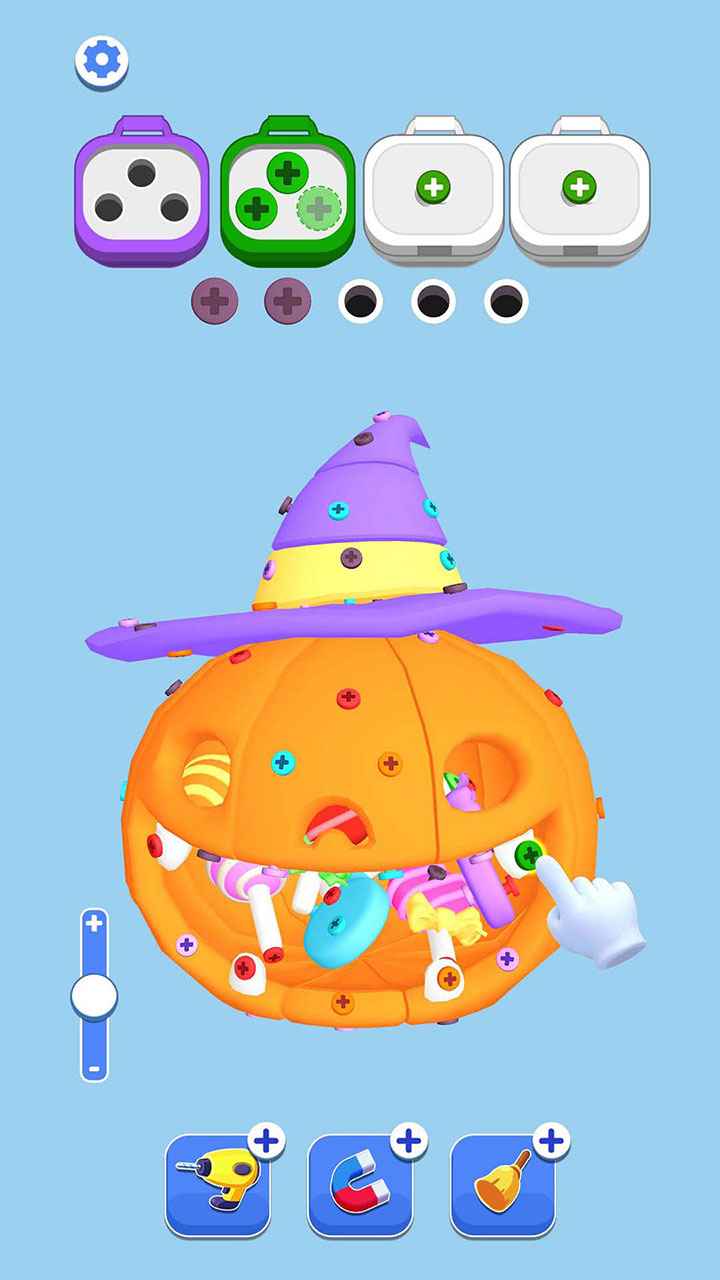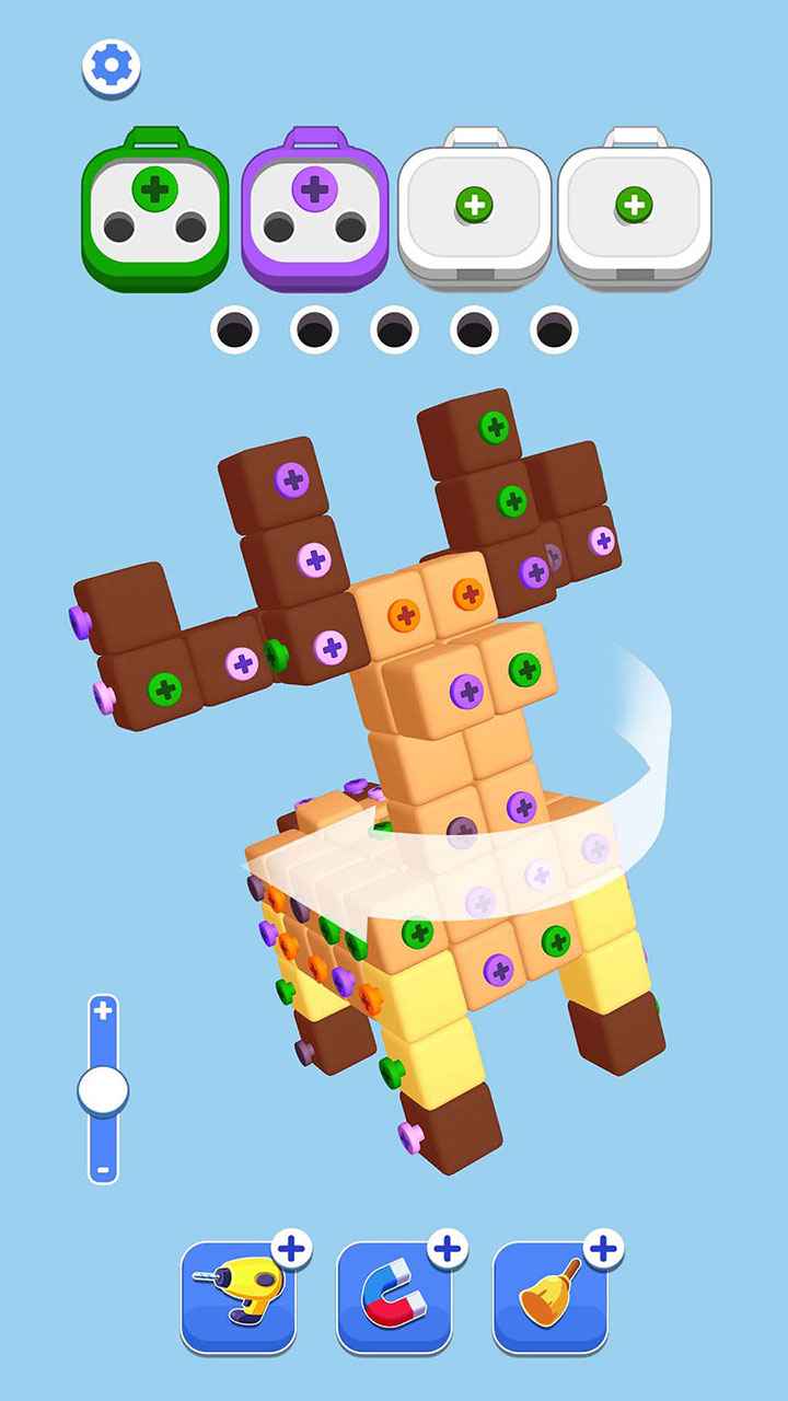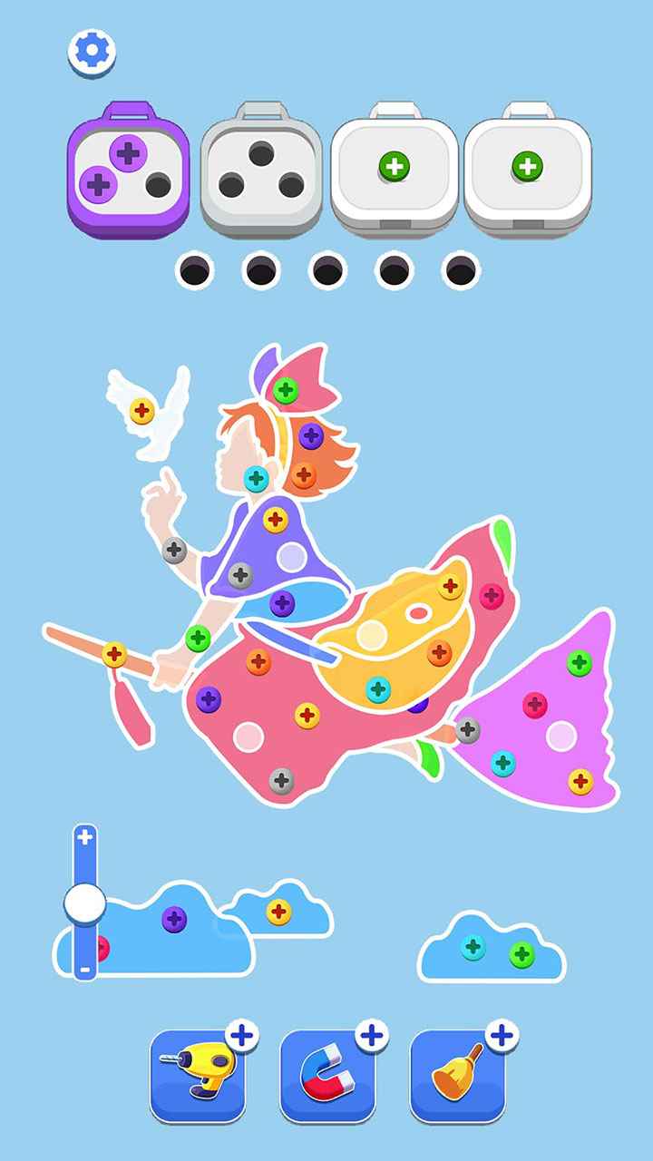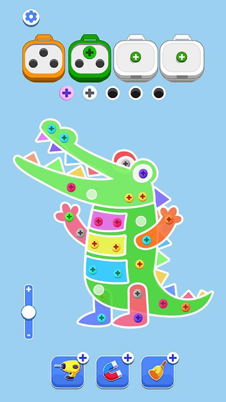 2、点击需要颜色的螺丝,不断的解锁图案,滑动屏幕查看需要的螺丝,点击即可快速的通关。